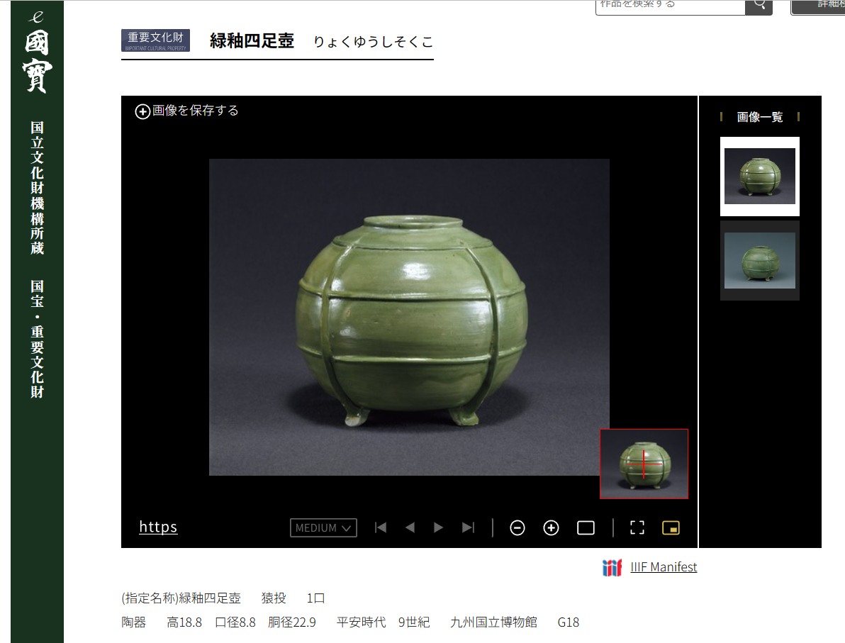 1. 구주국립박물관九州国立博物館 소장 녹유사족호緑釉四足壺 りょくゆうしそくこ
