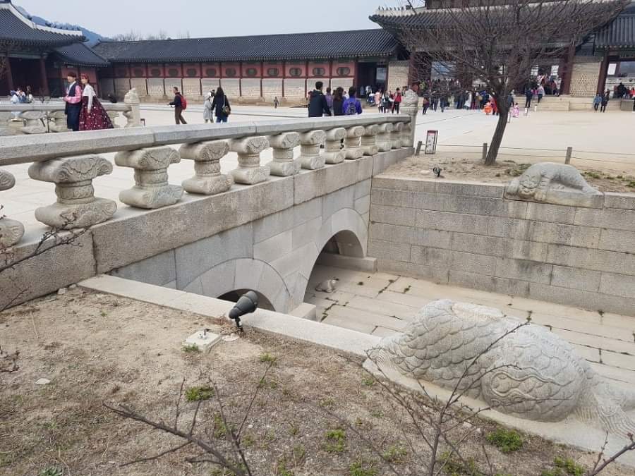 ○景福宮光化門內 有錦川石橋 橋旁水涯 有大石龜二座 雕刻甚精 今鮮能者 壬辰之亂 其一移于南別宮後墻內 閭巷往往祈福 其一尙宛然不移 人言天將大雨 龜必有聲