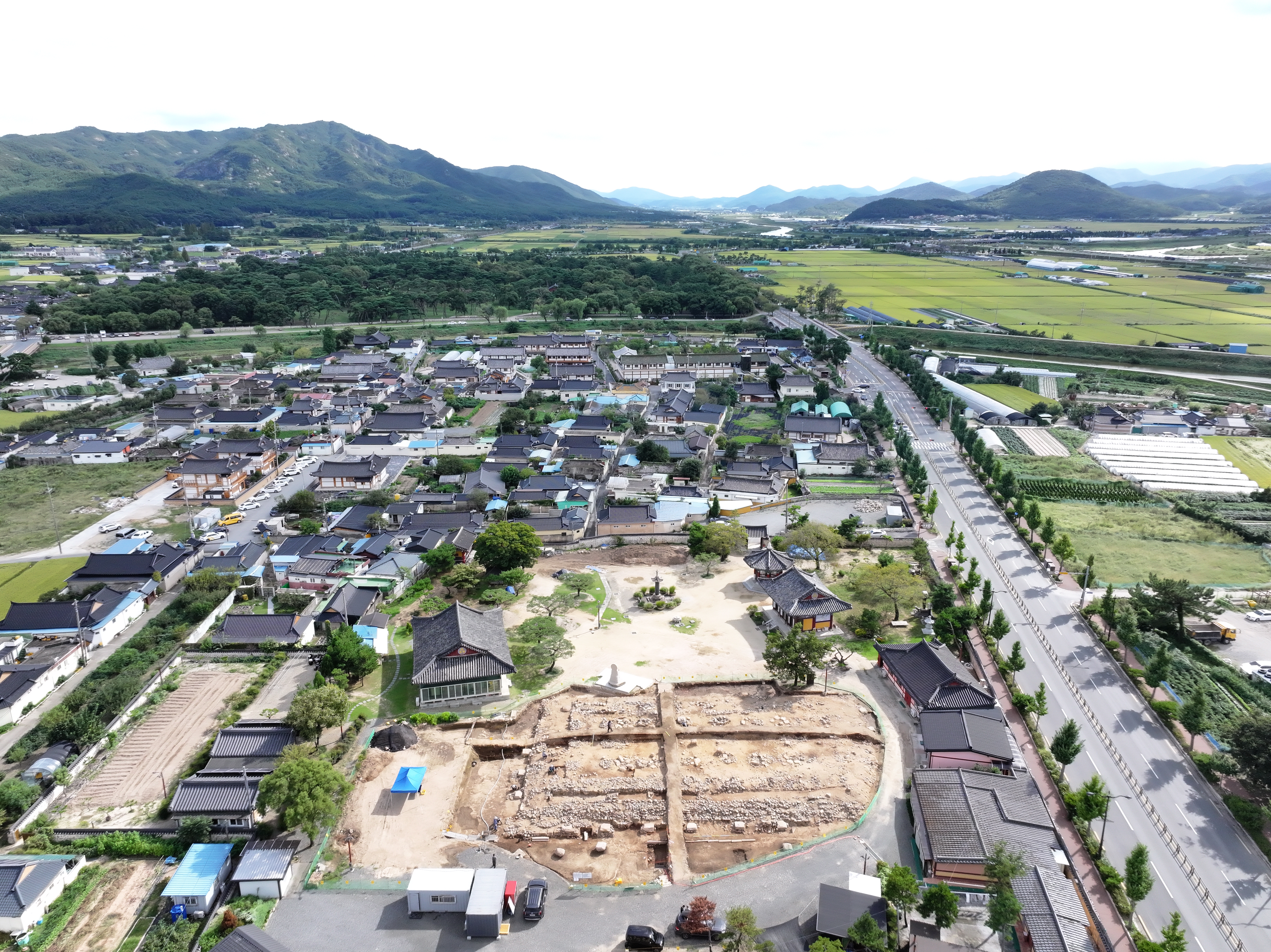 오른쪽으로 달리는 도로가 보이는데 저 도로 주변 지점 배수관 공사인가를 하는 과정에서 작년 고려시대 불교공양구가 잔뜩 쏟아지는 바람에 이번 본격 발굴이 있게 되었다.