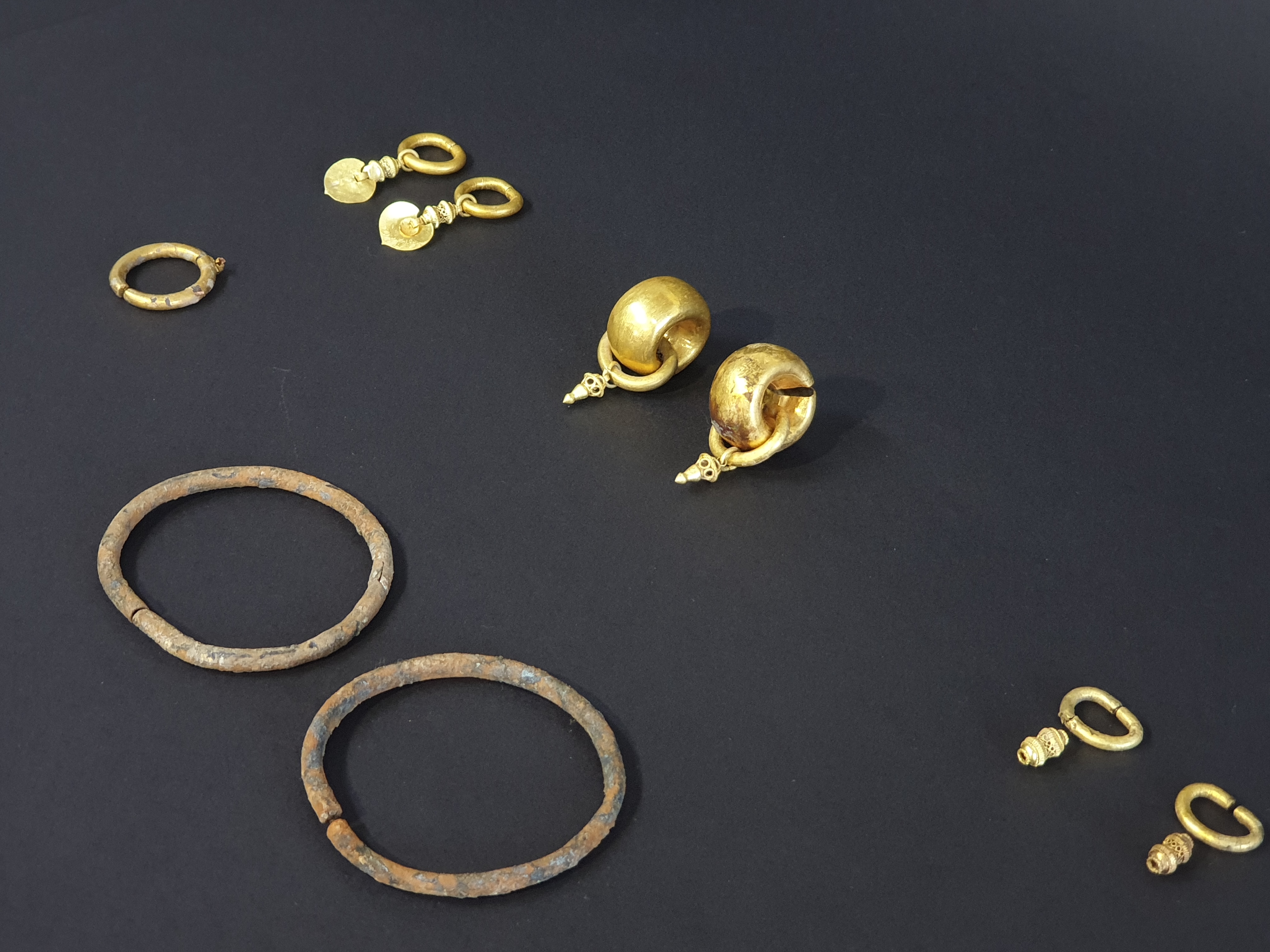 팔찌도 끼어 있거니와 황금귀걸이 중엔 태환이식이라 해서 테가 두툼한 한 세트가 있다.