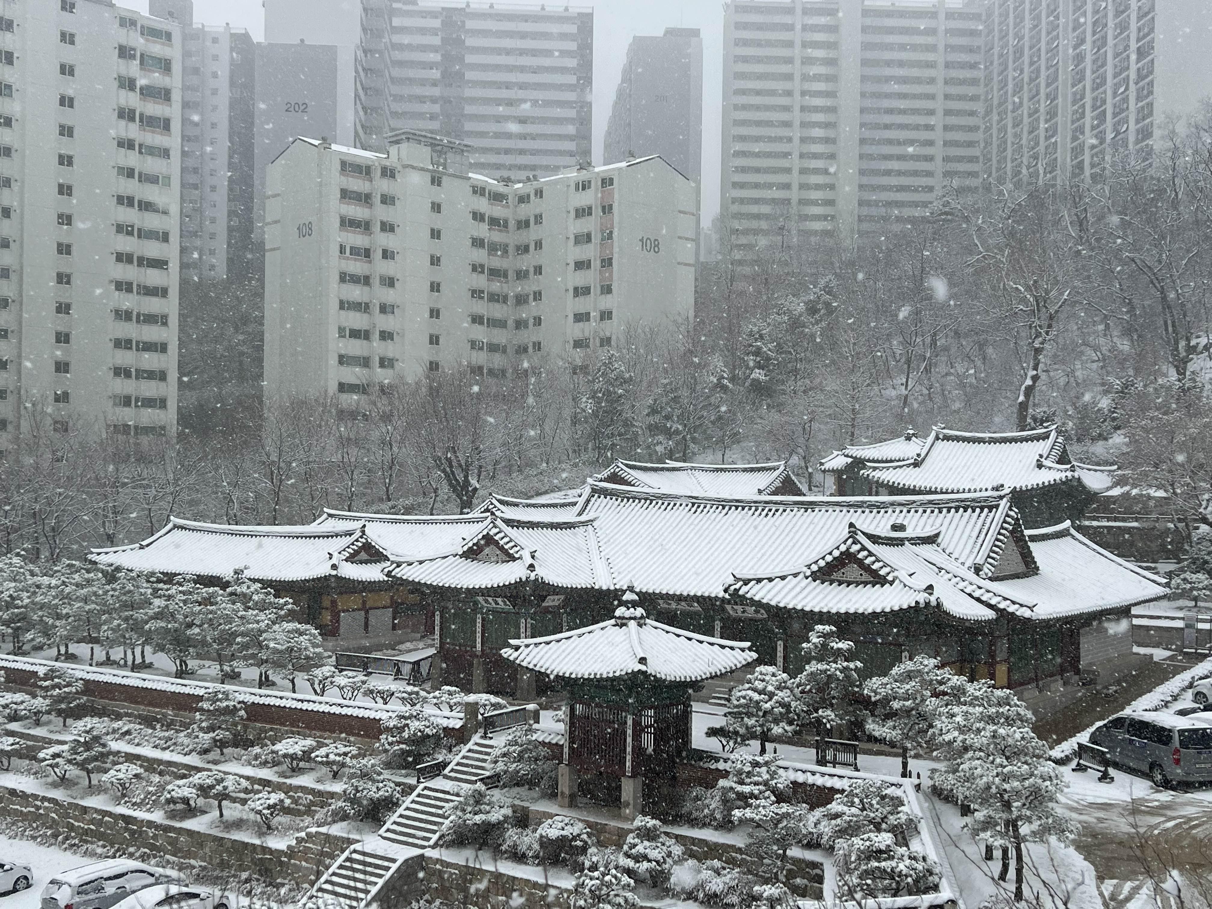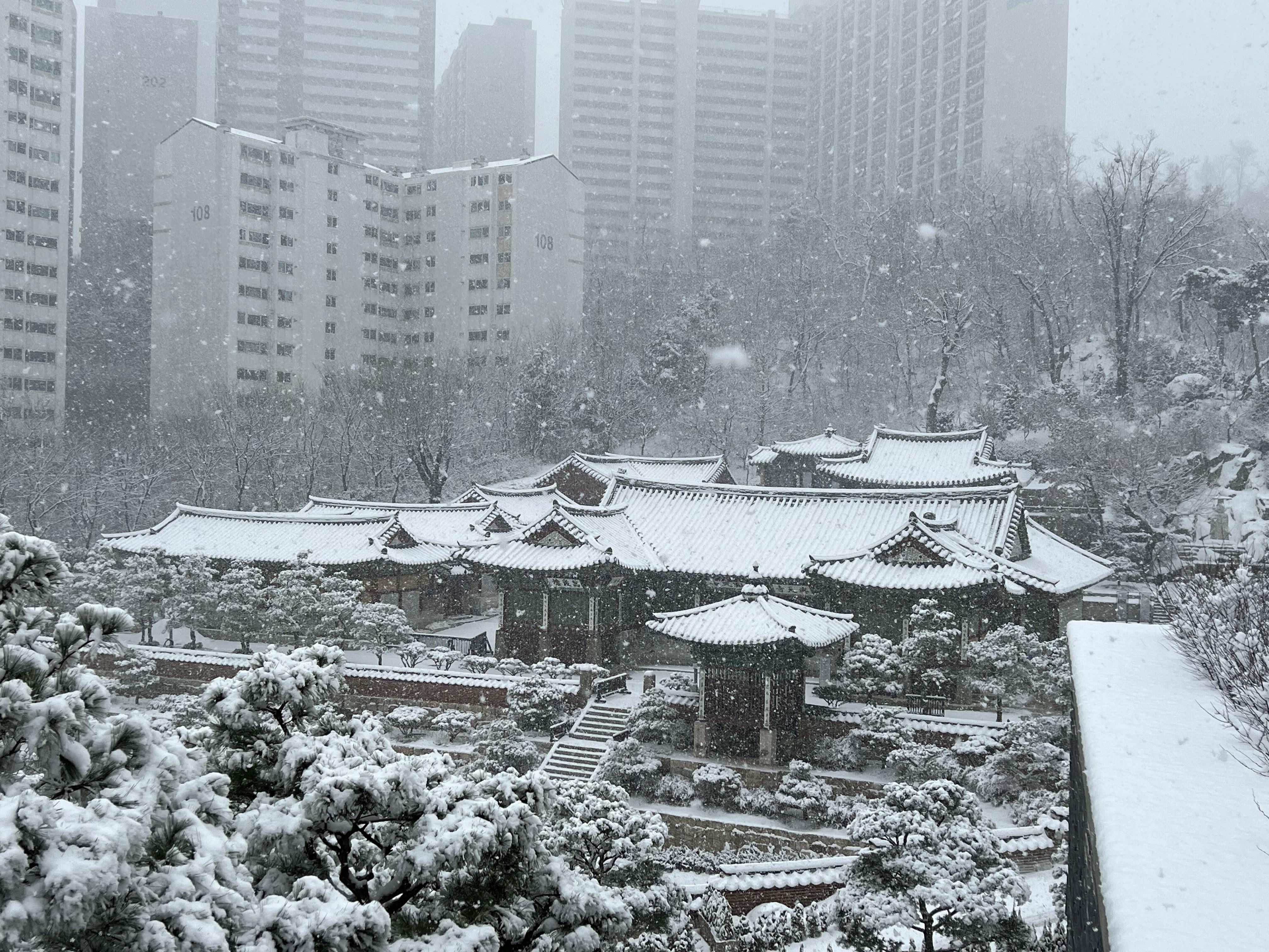 (그러나 이 날은 하얀 눈 속에 묻힌 흥천사를 보느라 아파트가 눈에 잘 들어오진 않았다.)