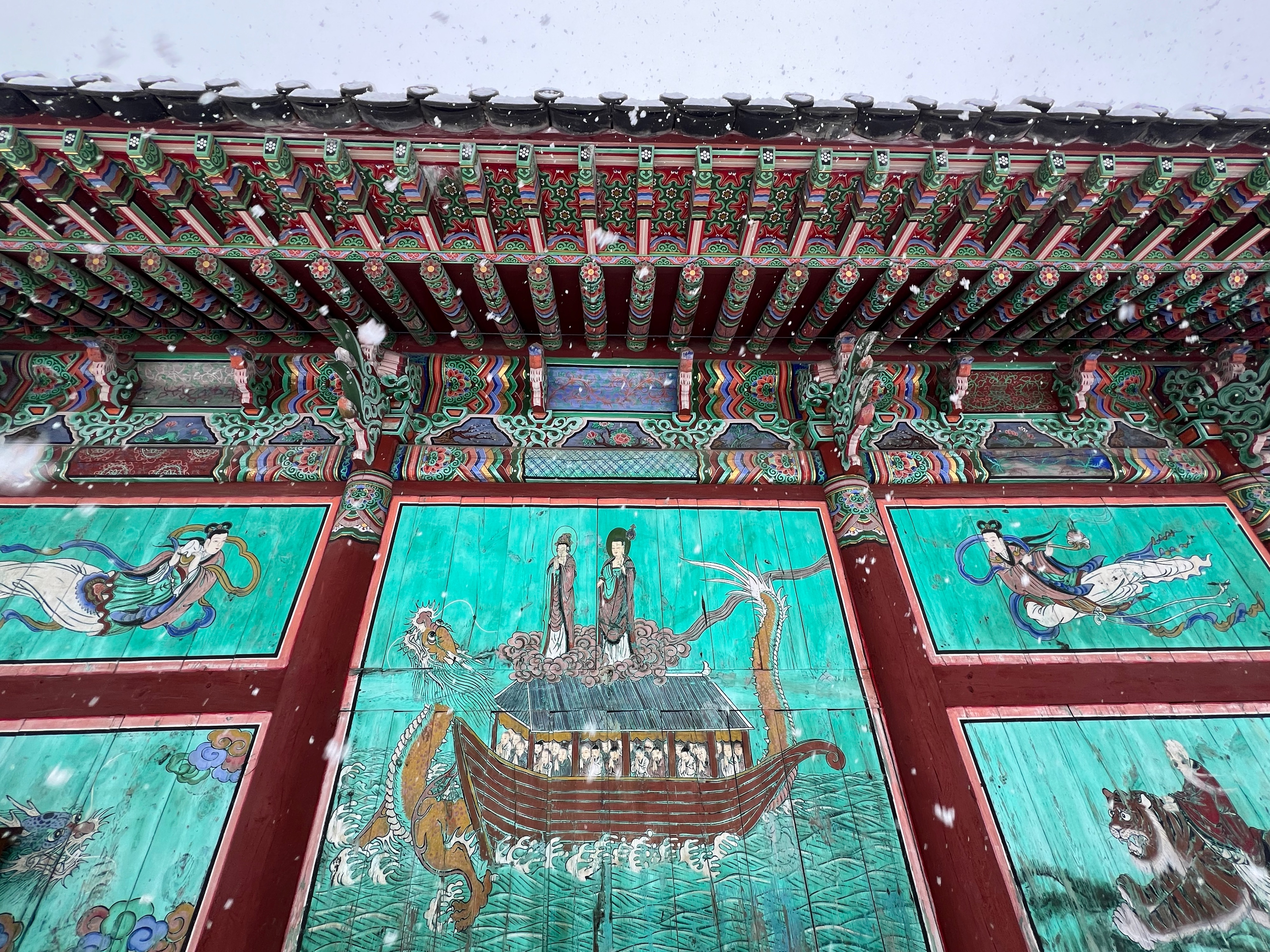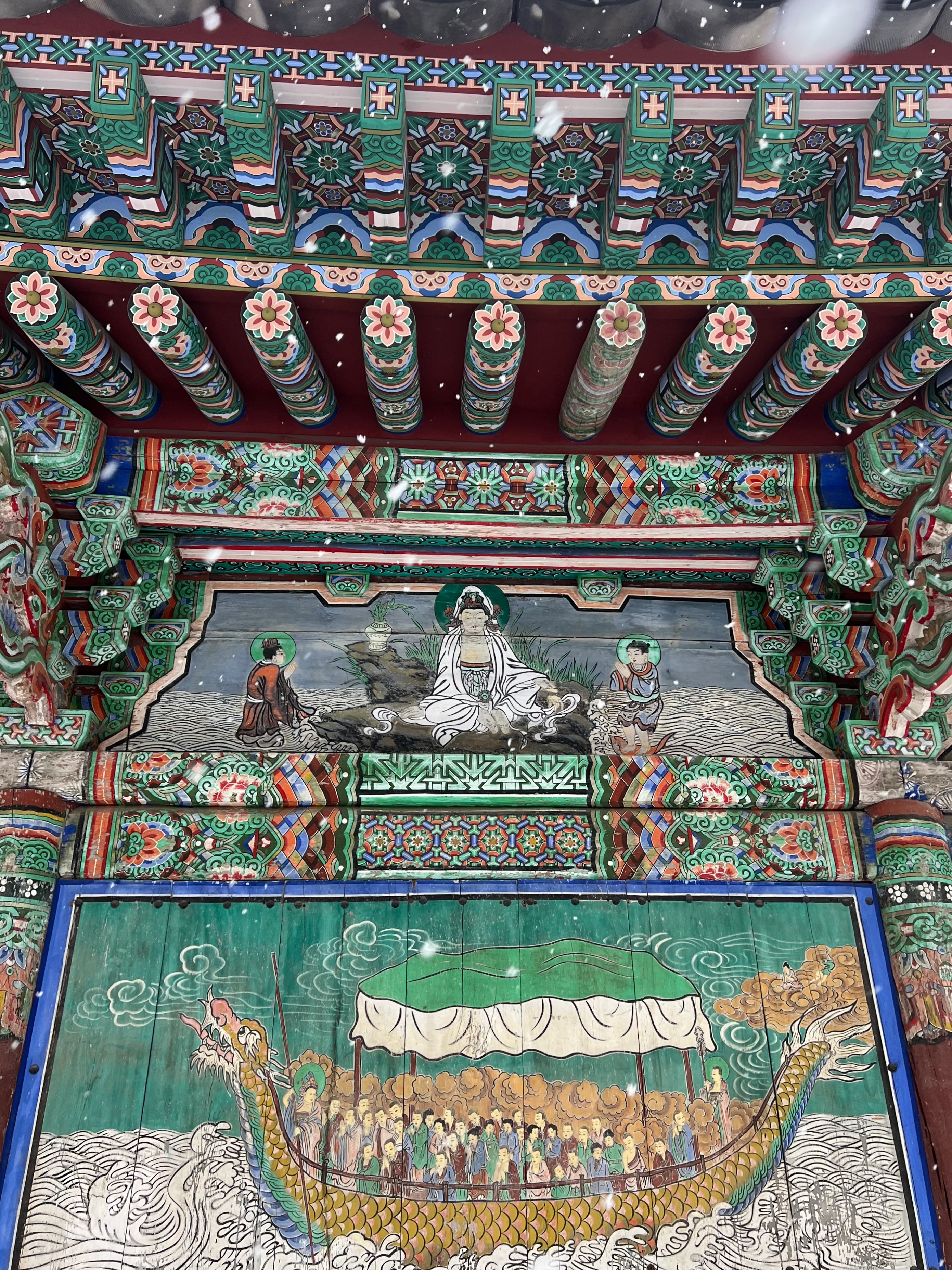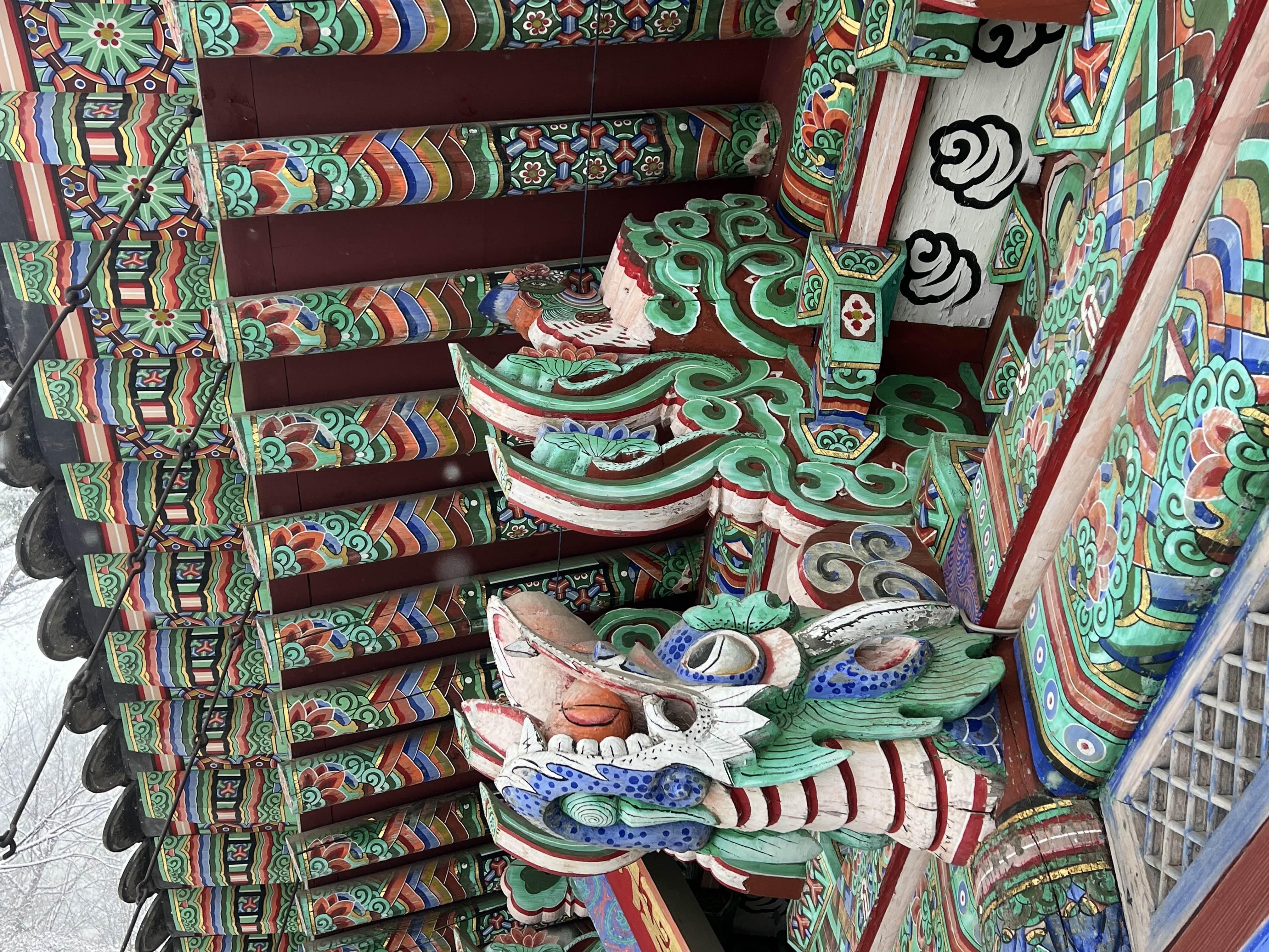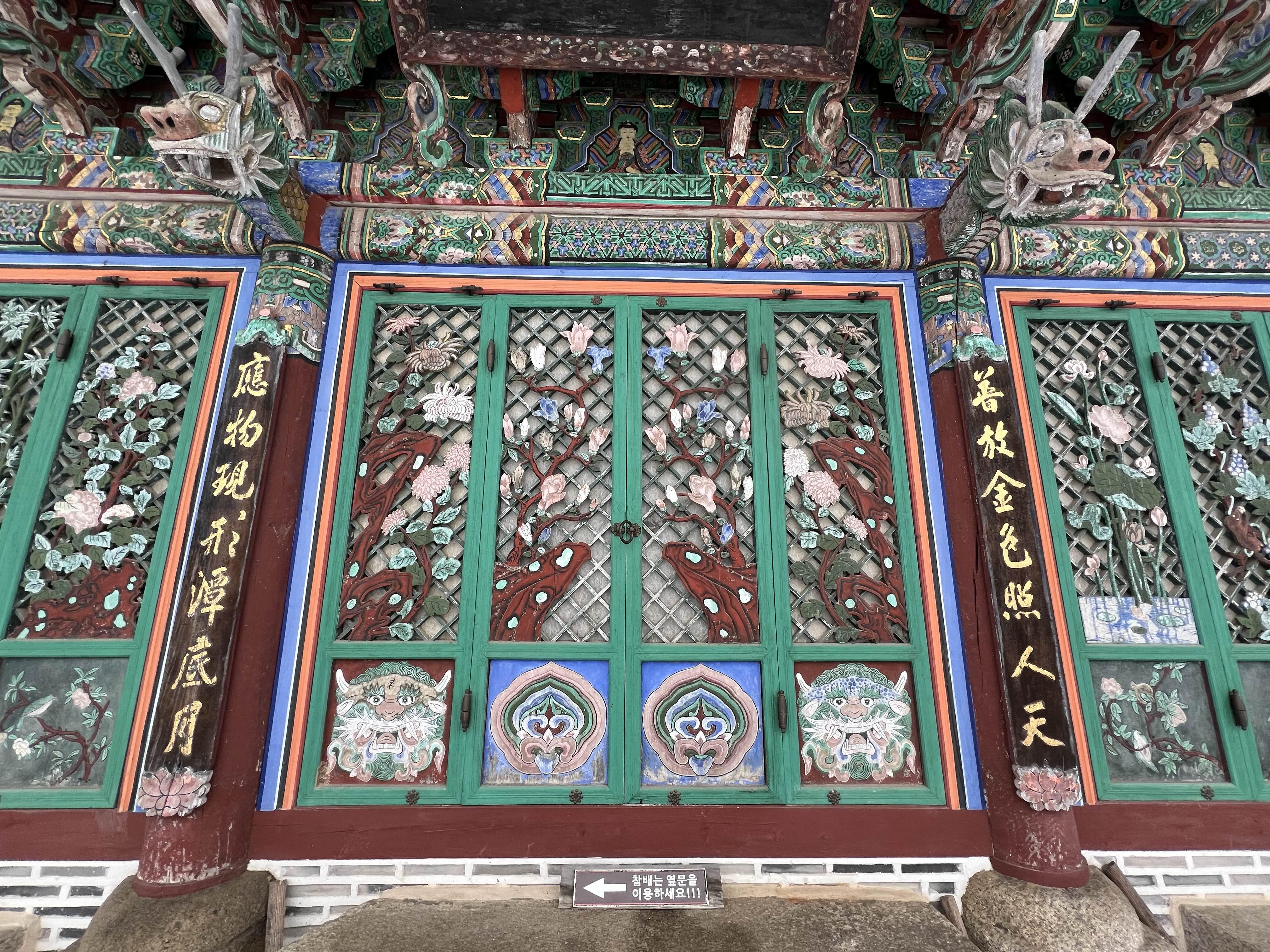 보통은 정면 가운데 기둥 위에만 용이 장식되는 것과 달리 정면 4개 기둥 모두 용이 장식되어 있어, 매우 신경쓴 건물임을 알 수 있다.