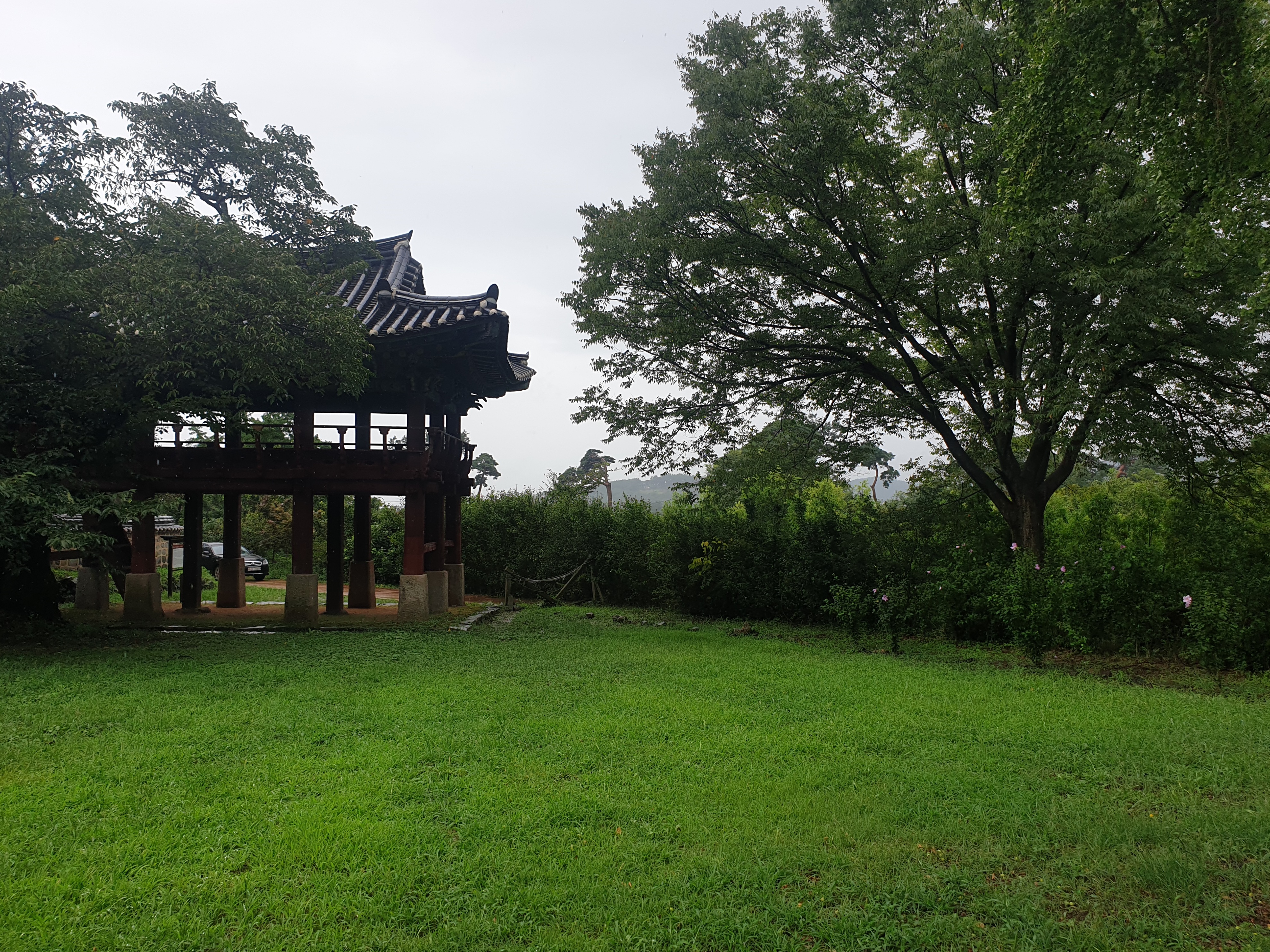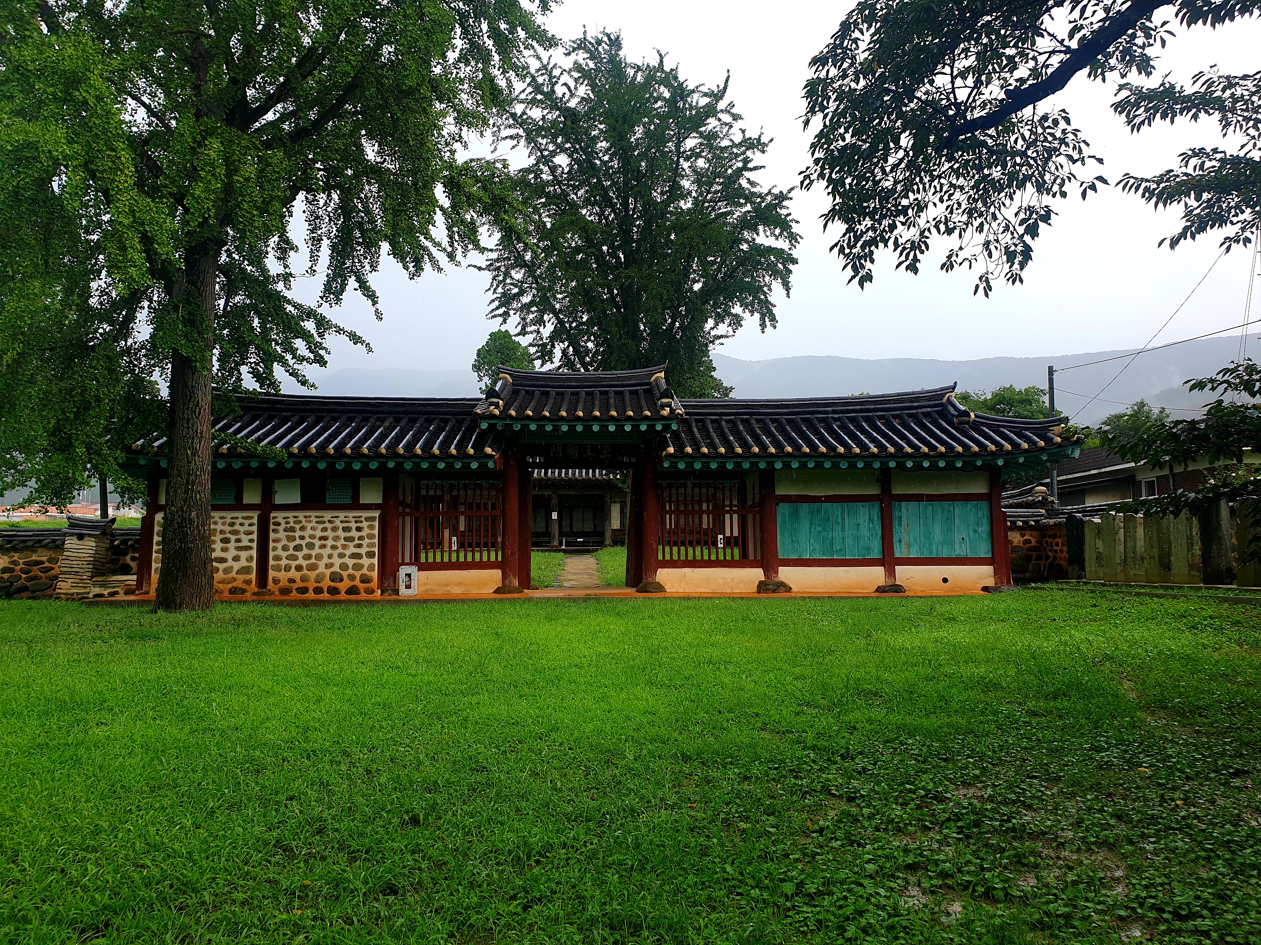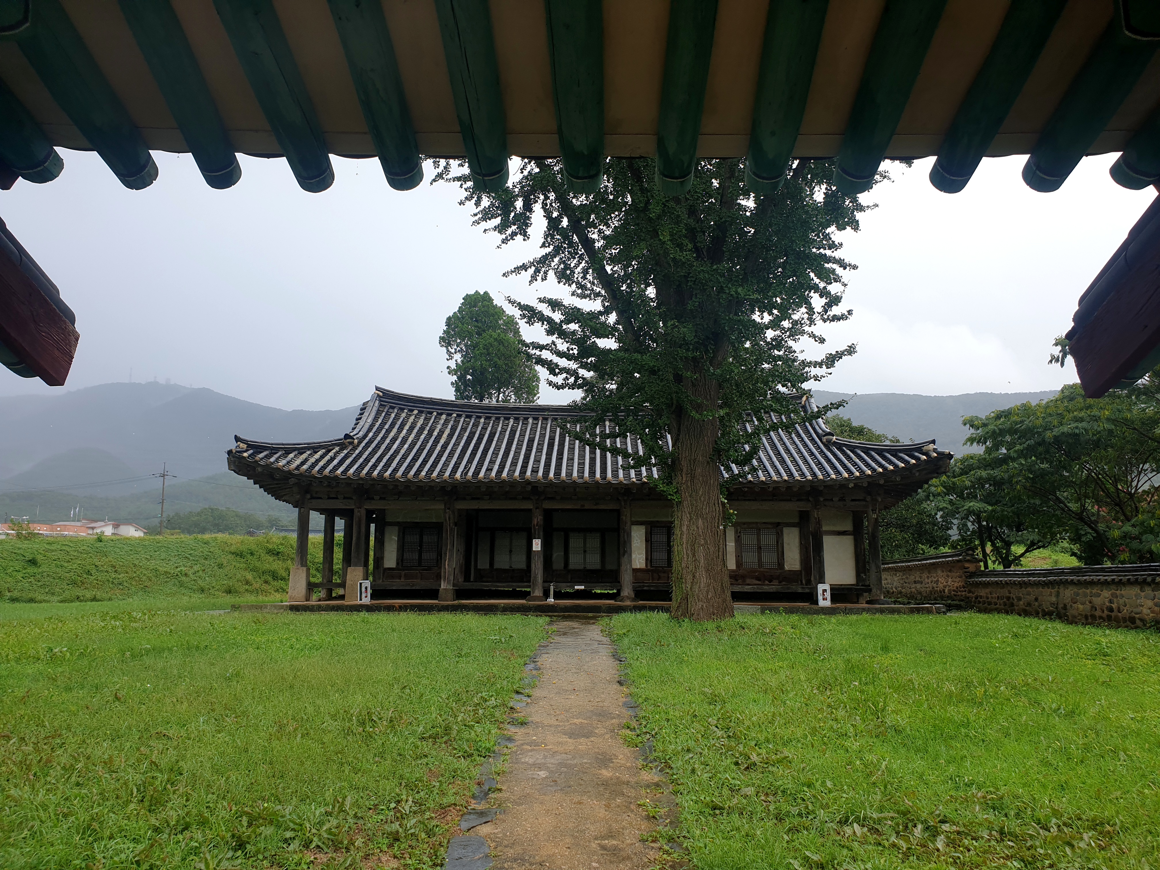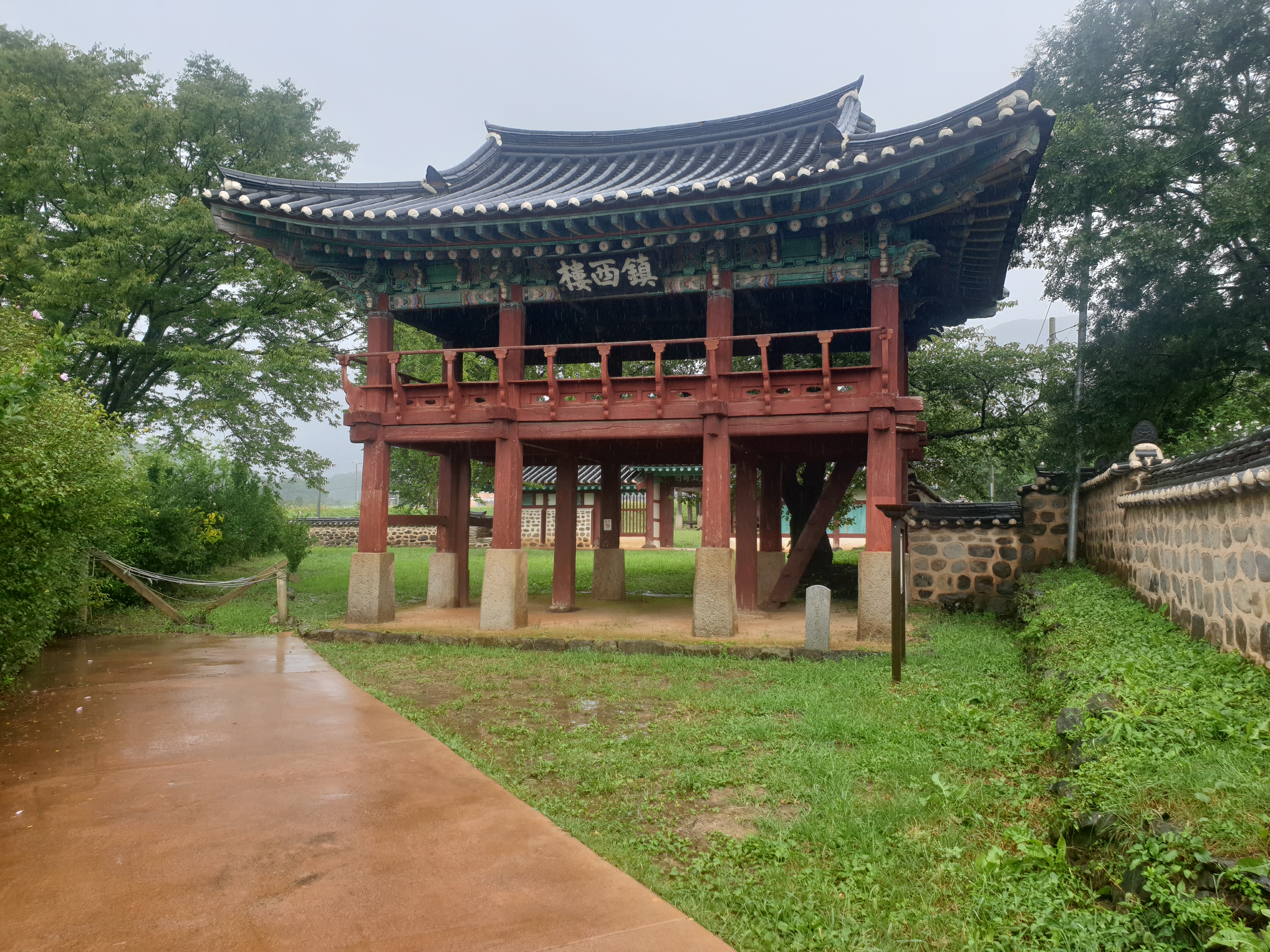 대문 들어서기 전 잠깐 뒤돌인 내가 겉은 뒤를 돌인보는데 저만치 진서루 물비 잔뜩 머금곤 처연히 섰다.