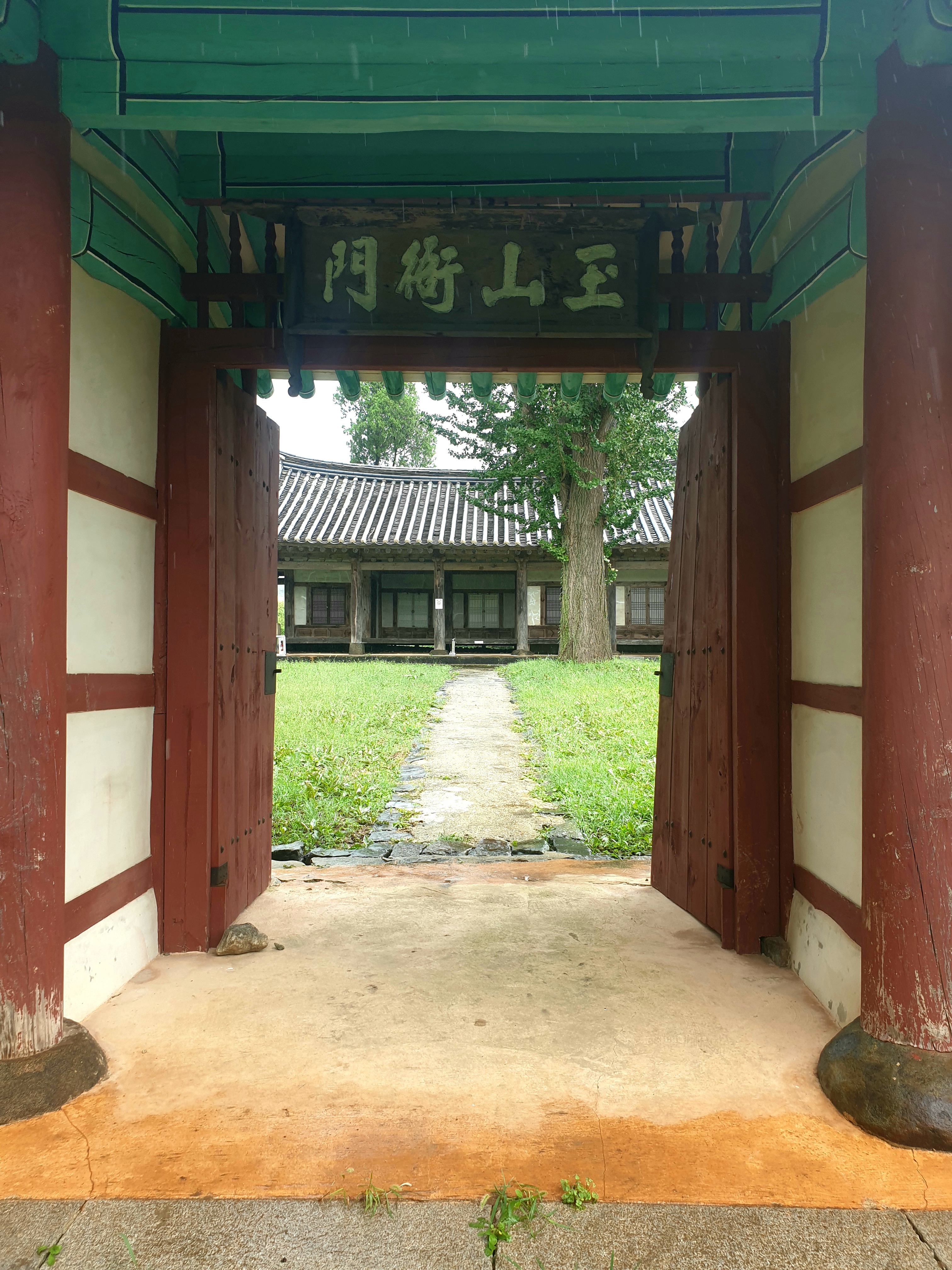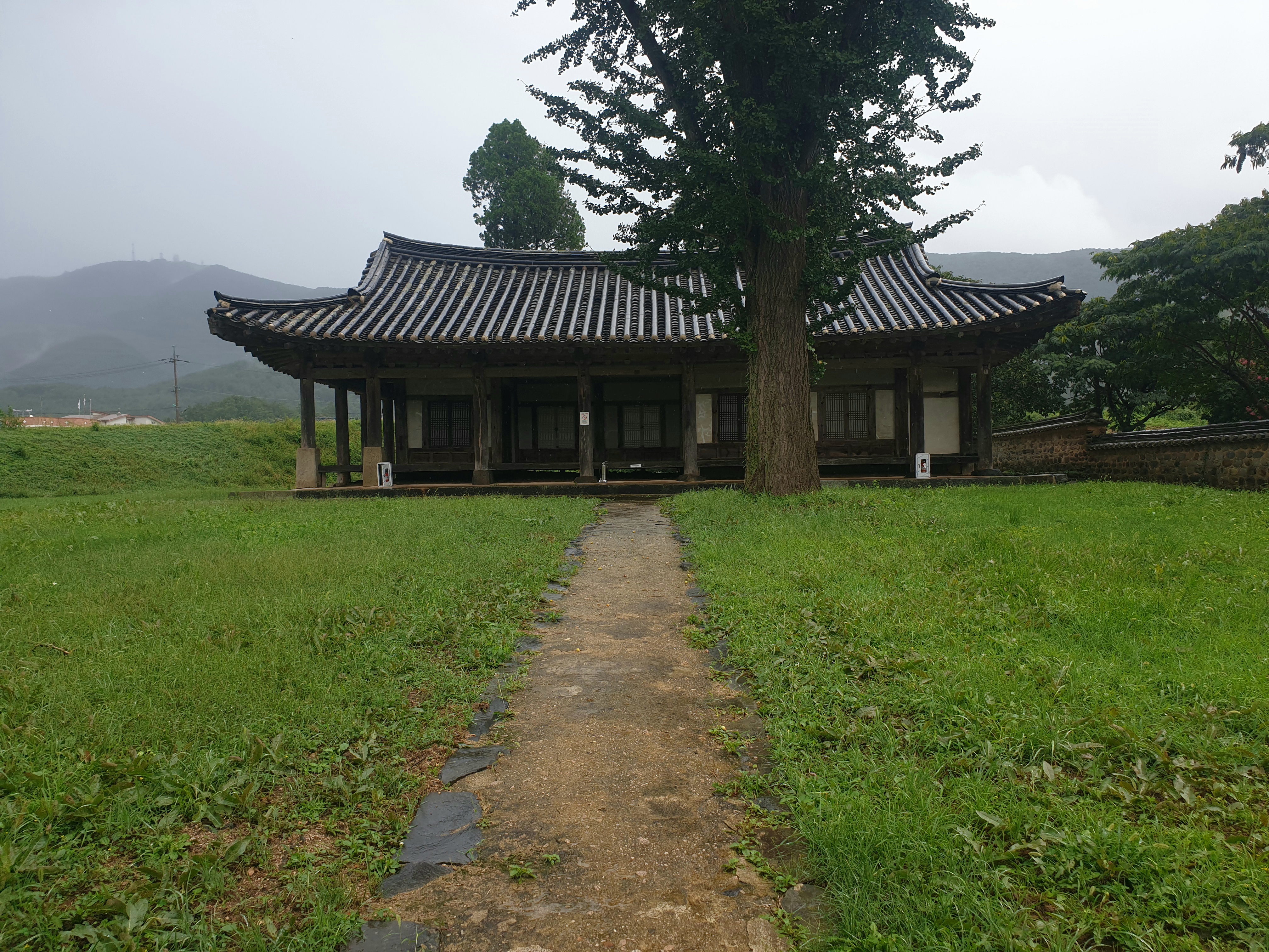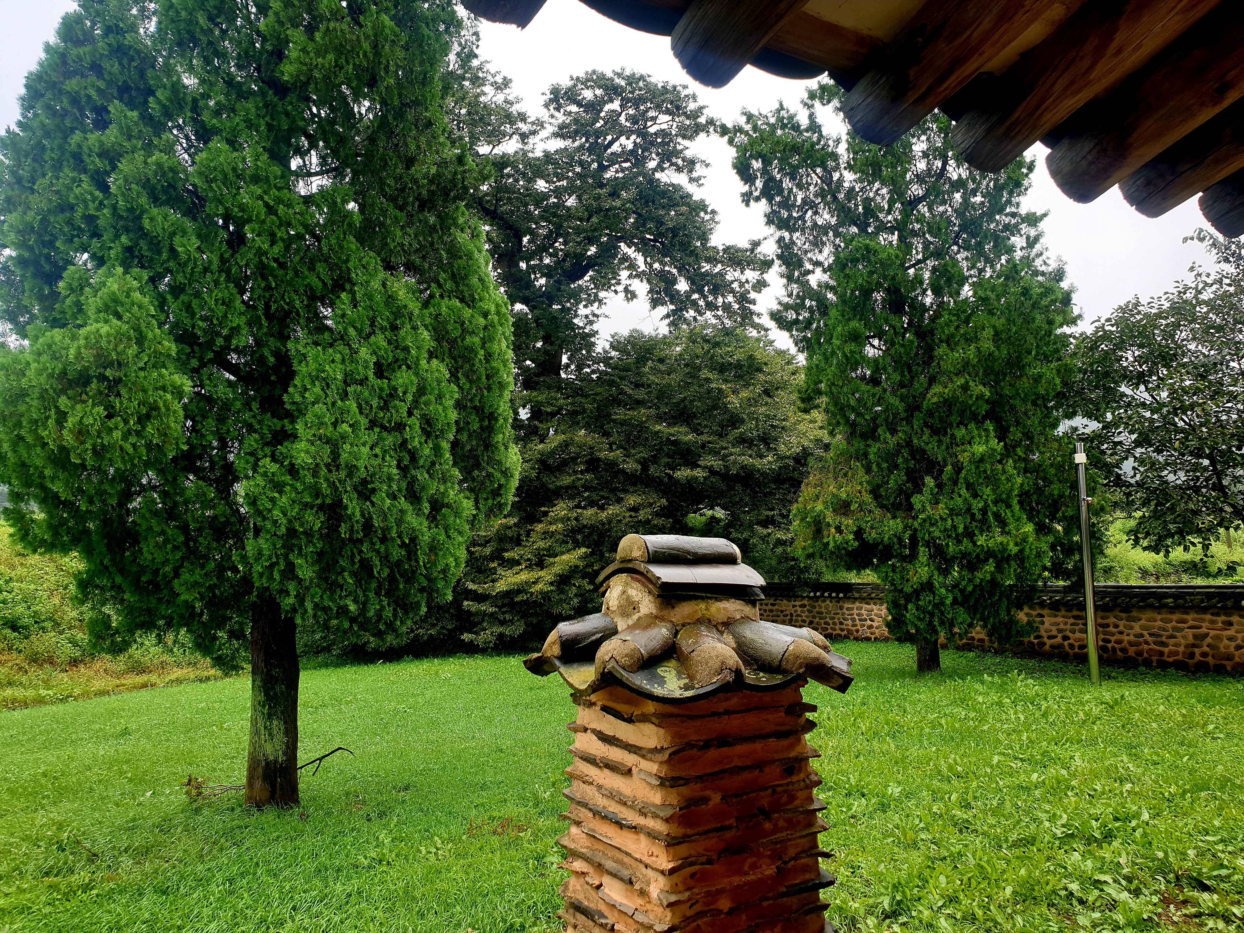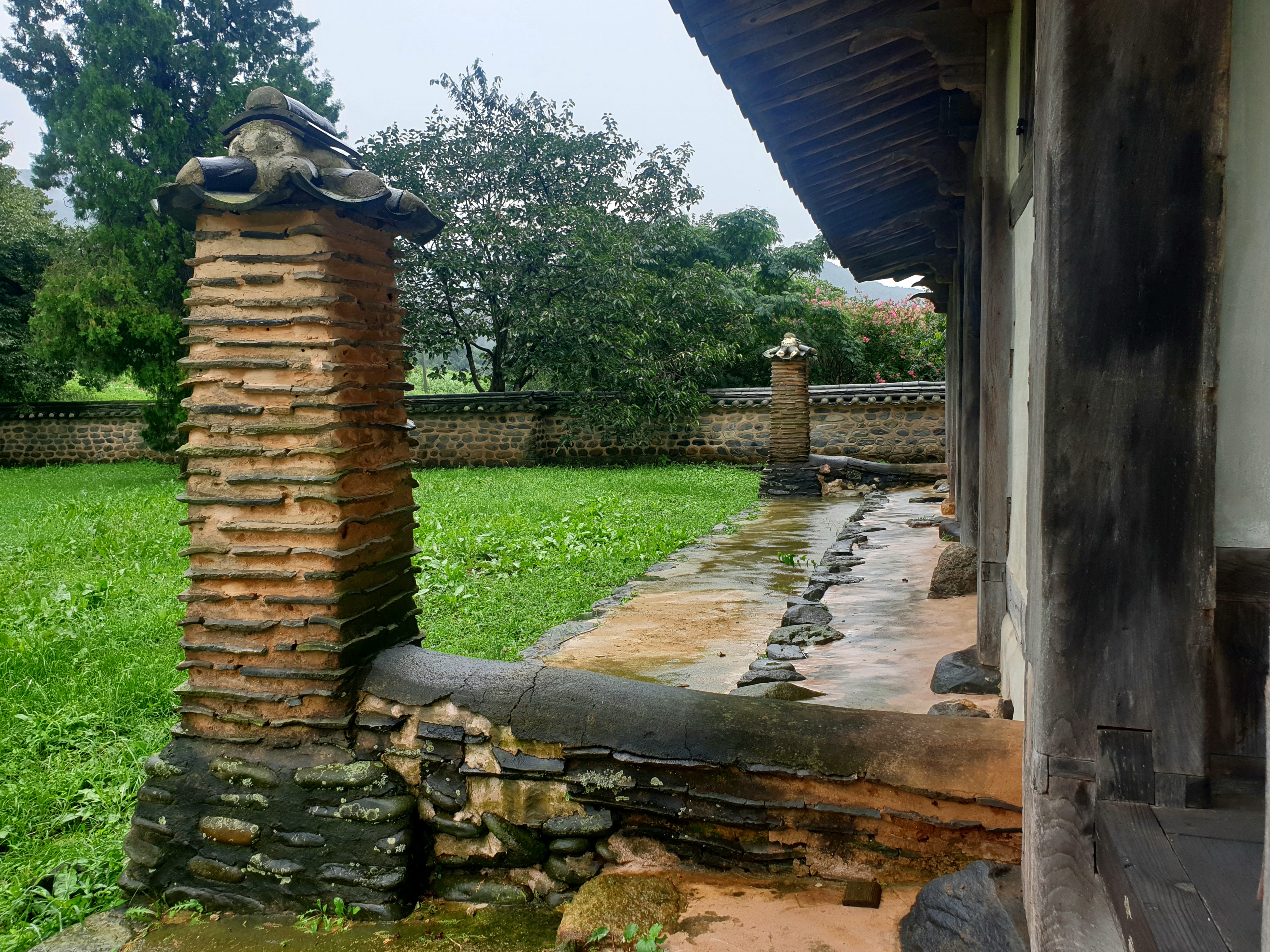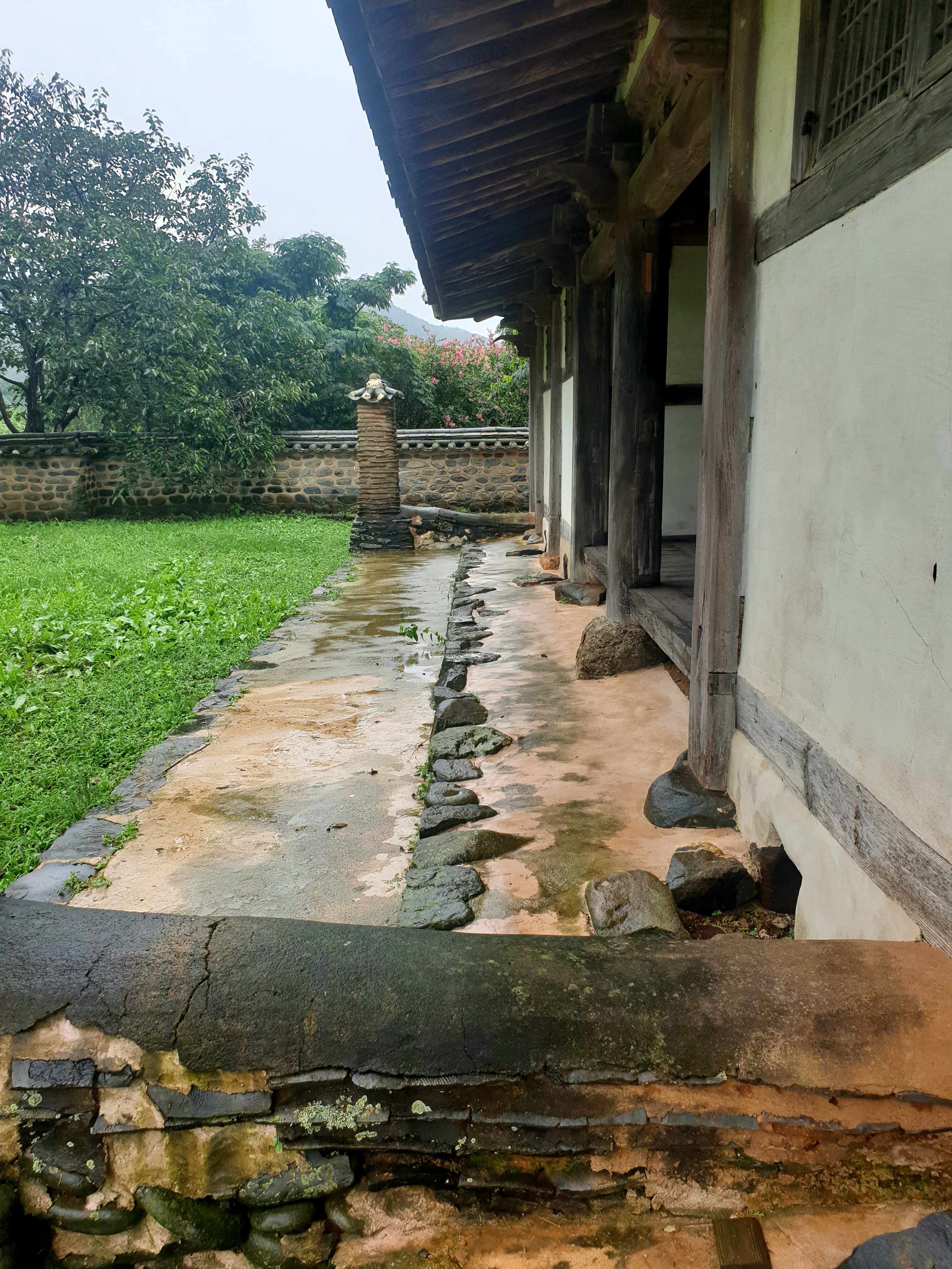 대문 들어서기 전 잠깐 뒤돌인 내가 겉은 뒤를 돌인보는데 저만치 진서루 물비 잔뜩 머금곤 처연히 섰다.