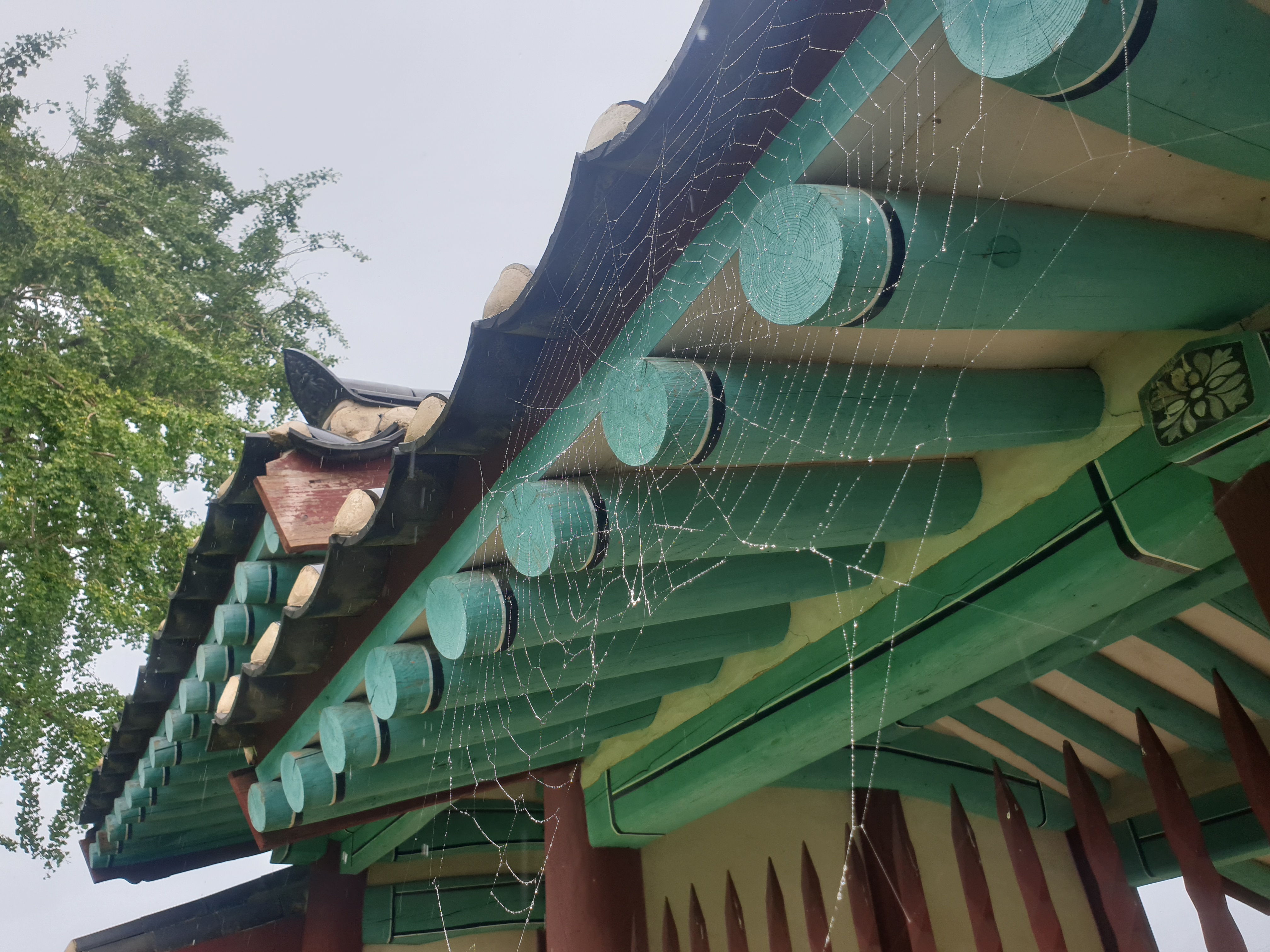쏴 하는 기분 일어 손 살포시 들어 더듬으니 거미줄이라 살피니 주인장 간데 없으니 아마도 이 폭우에 잠시 기왓장 밑 어딘가로 피신하며 집이 무사하길 빌고 있는지 모르겠더라.