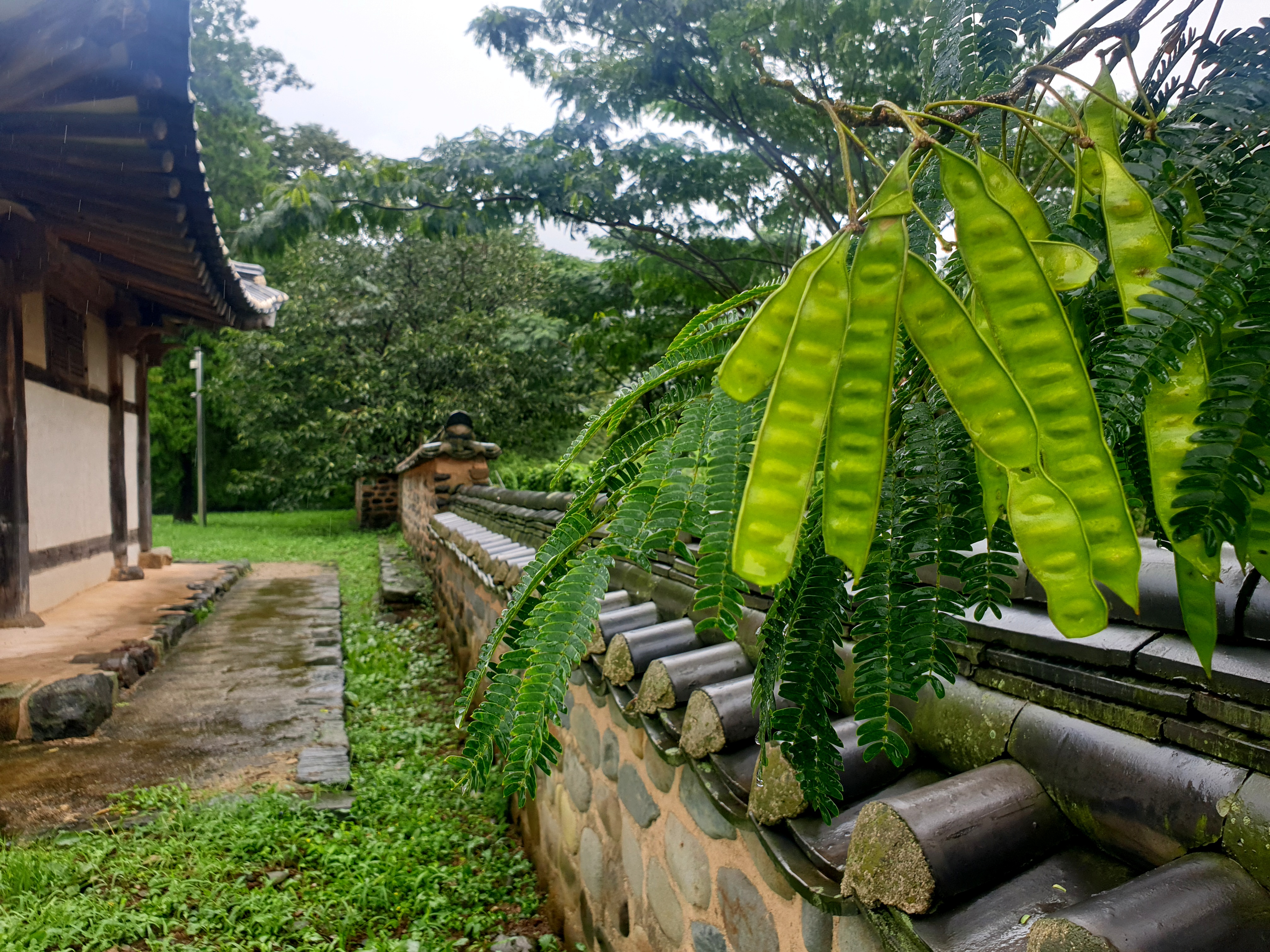 쏴 하는 기분 일어 손 살포시 들어 더듬으니 거미줄이라 살피니 주인장 간데 없으니 아마도 이 폭우에 잠시 기왓장 밑 어딘가로 피신하며 집이 무사하길 빌고 있는지 모르겠더라.