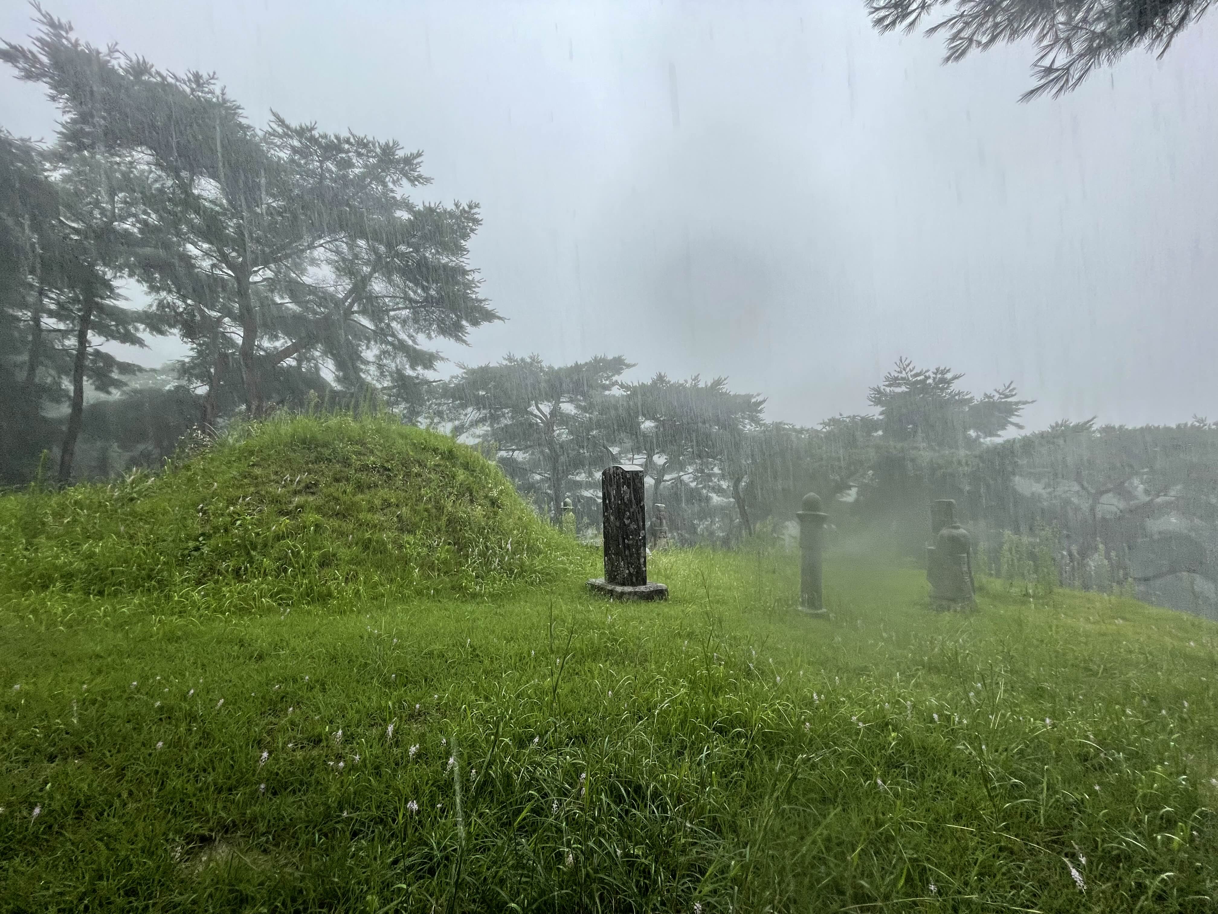 천안에서 출발할 때는 비가 내리지 않았는데, 그 언저리 이남규 고택에 다다르니 비가 추적추적 내리기 시작했고, 이산해 묘 근처에 오니 비가 정말 폭우처럼 쏟아졌다.