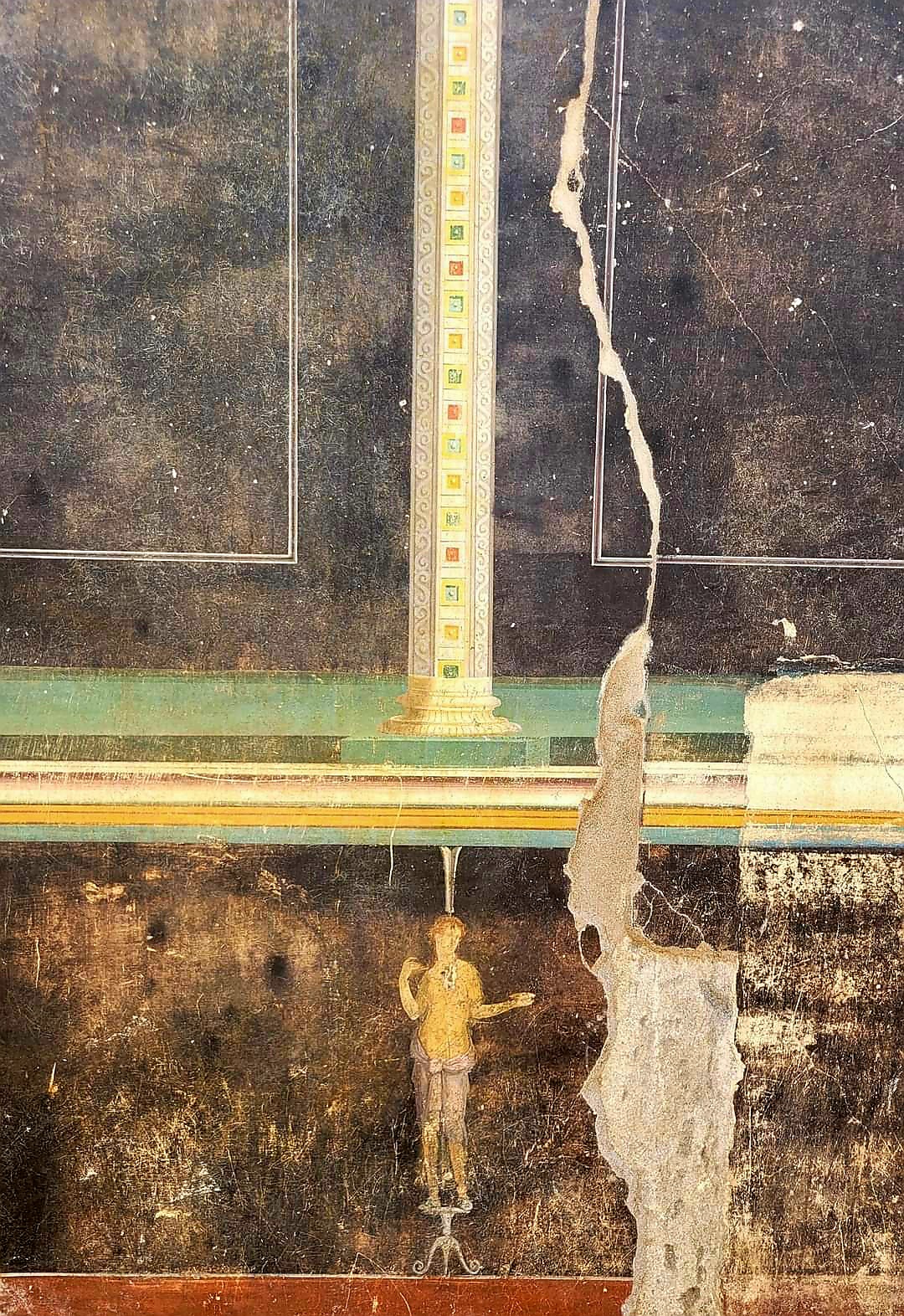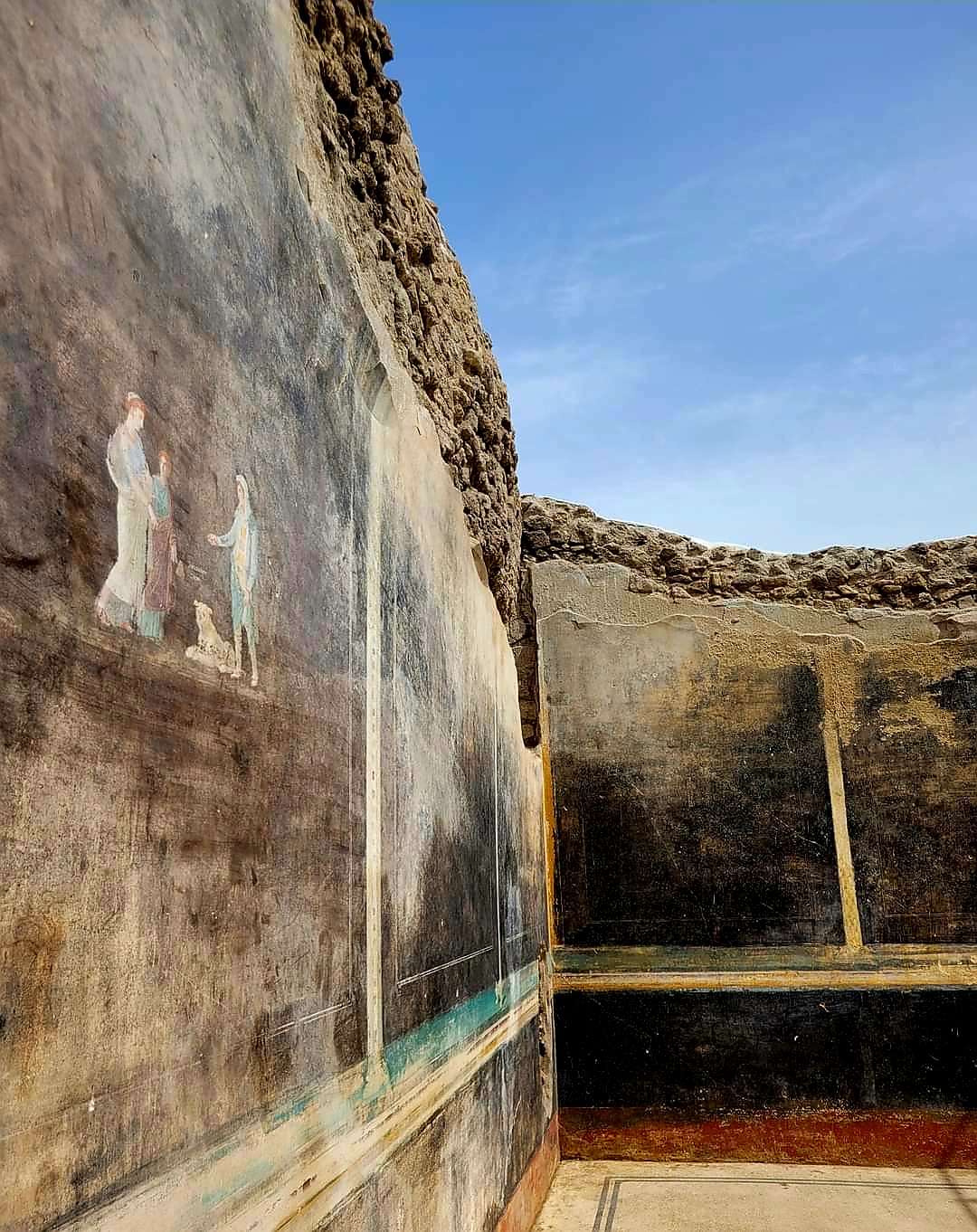 Behind these two houses, sumptuous frescoed living rooms are emerging in this phase of excavation, also in this case affected by important renovation works at the time of the eruption.
