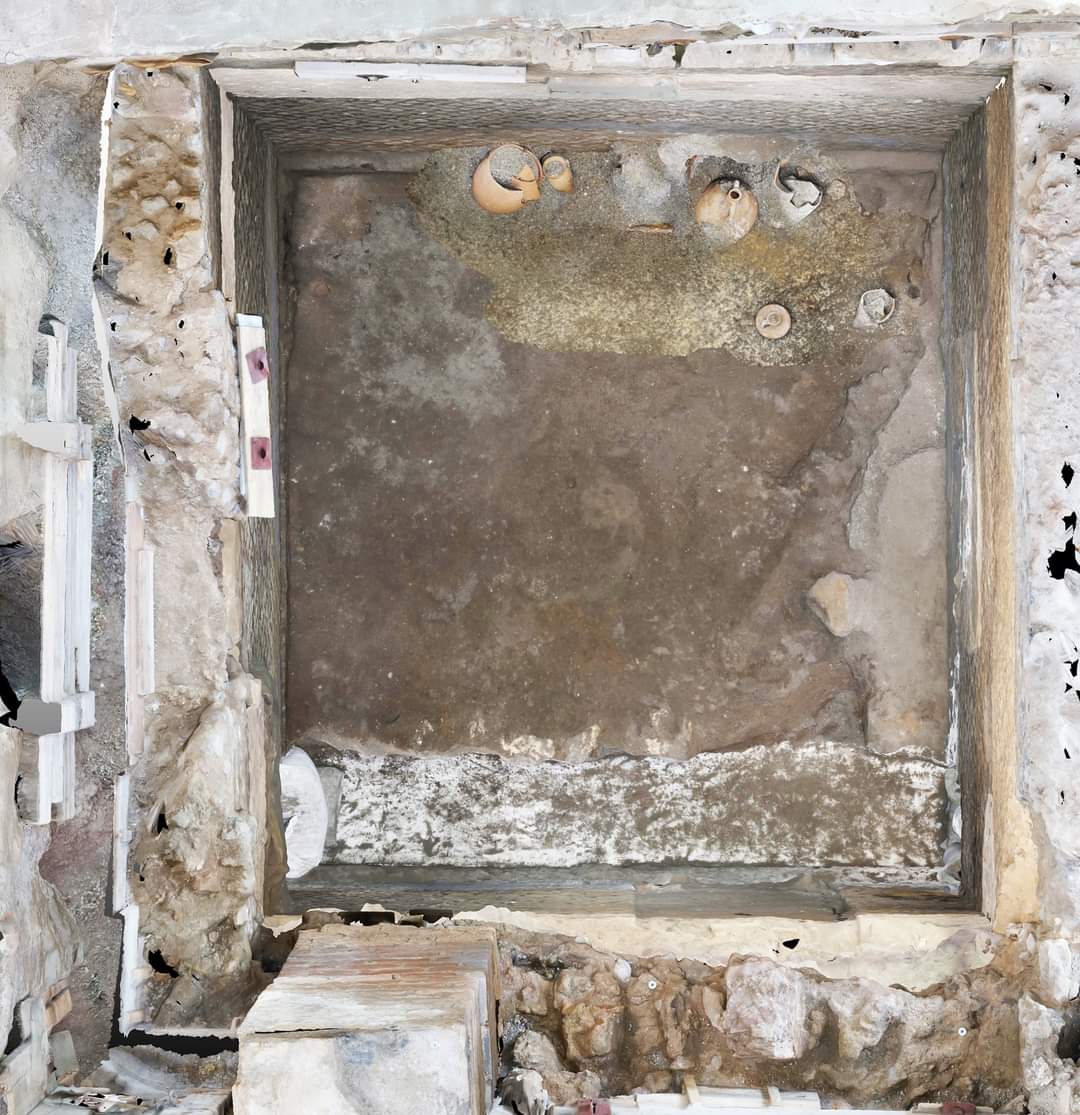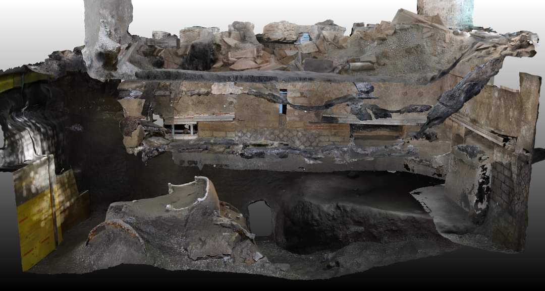 베수비오화산 폭발로 생성된 이런 유적은 유기물질 같은 건 거의 다 화산재에 녹아없어지고 그 흔적만 남았으니, 그런 흔적이 대개 화산재 속에서 구멍이 뽕뽕 뚫린 상태라, 폼페이에서는 이럴 때마다 이 구멍으로 백회를 쏟아부으니 그렇게 해서 이 백회가 굳은 모습을 보면 그대로 타서 없어진 흔적이 복원된다.