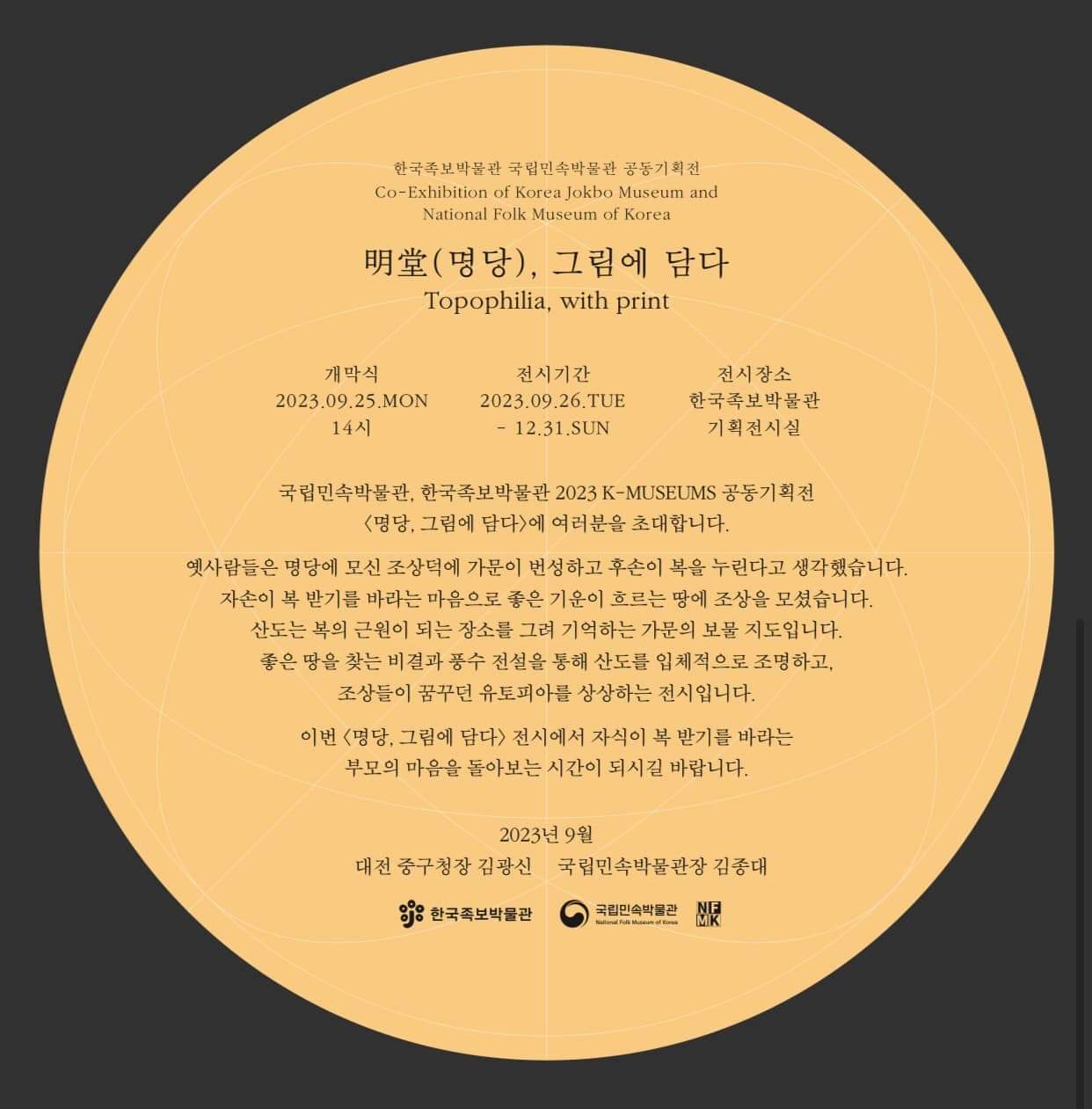 한국족보박물관(대전 중구)이 국립민속박물관 National Folk Museum of Korea 과 공동으로 기획한 ”명당, 그림에 담다“ 전시에서