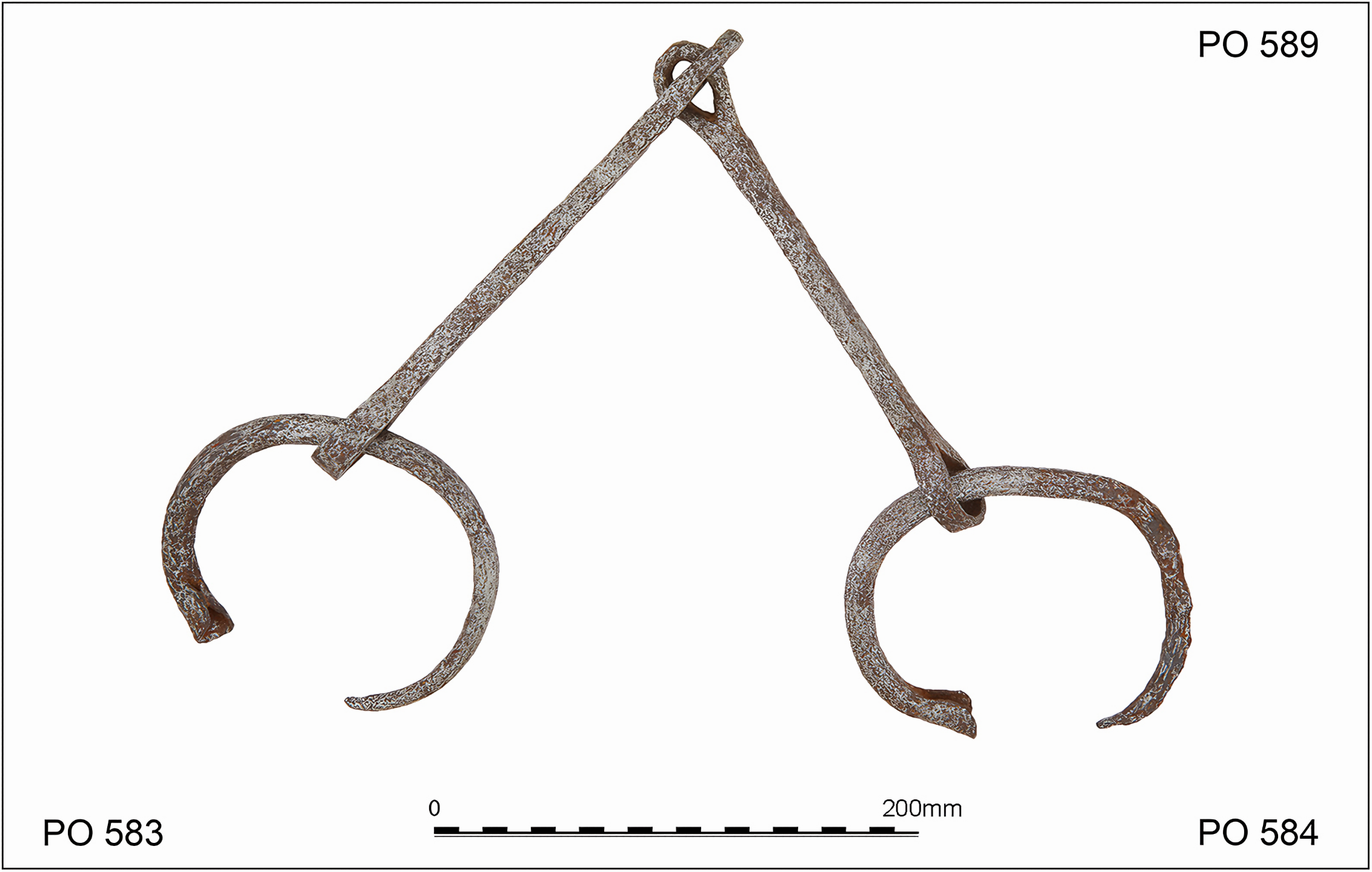 아마도 이러한 활동과 관련이 있을 수 있지만, 족쇄 두 세트가 발견되었다.