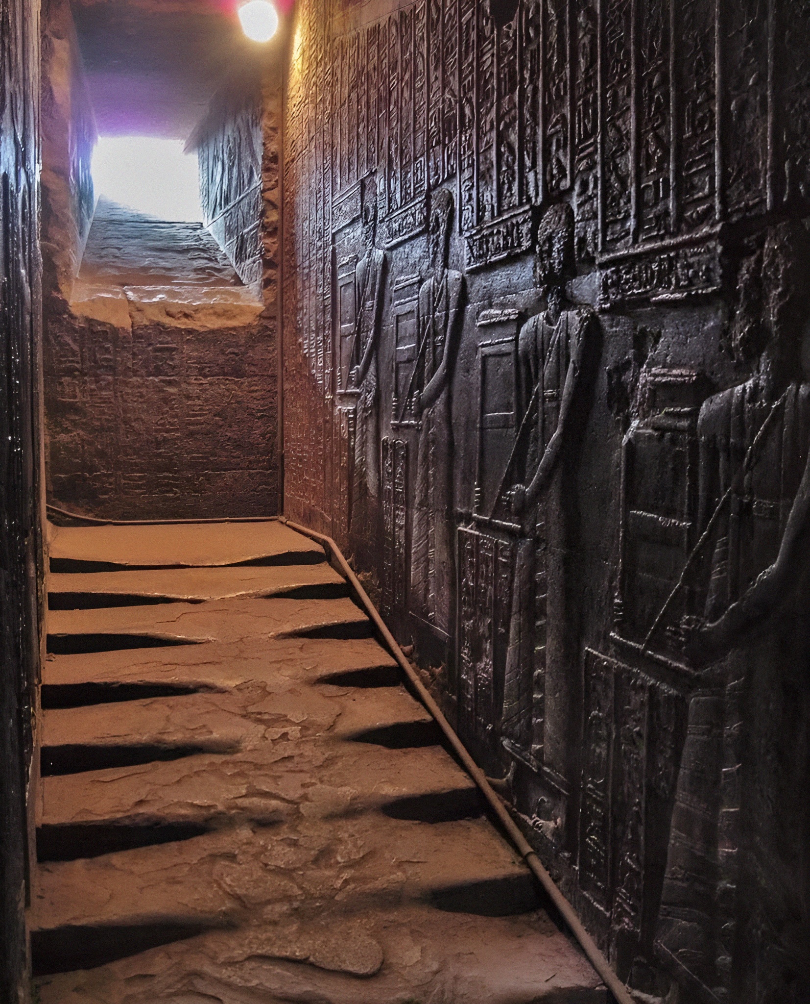 이집트 덴데라 Dendera 소재 하토르 Hathor 신전 '녹은 melted' 계단과 부조.