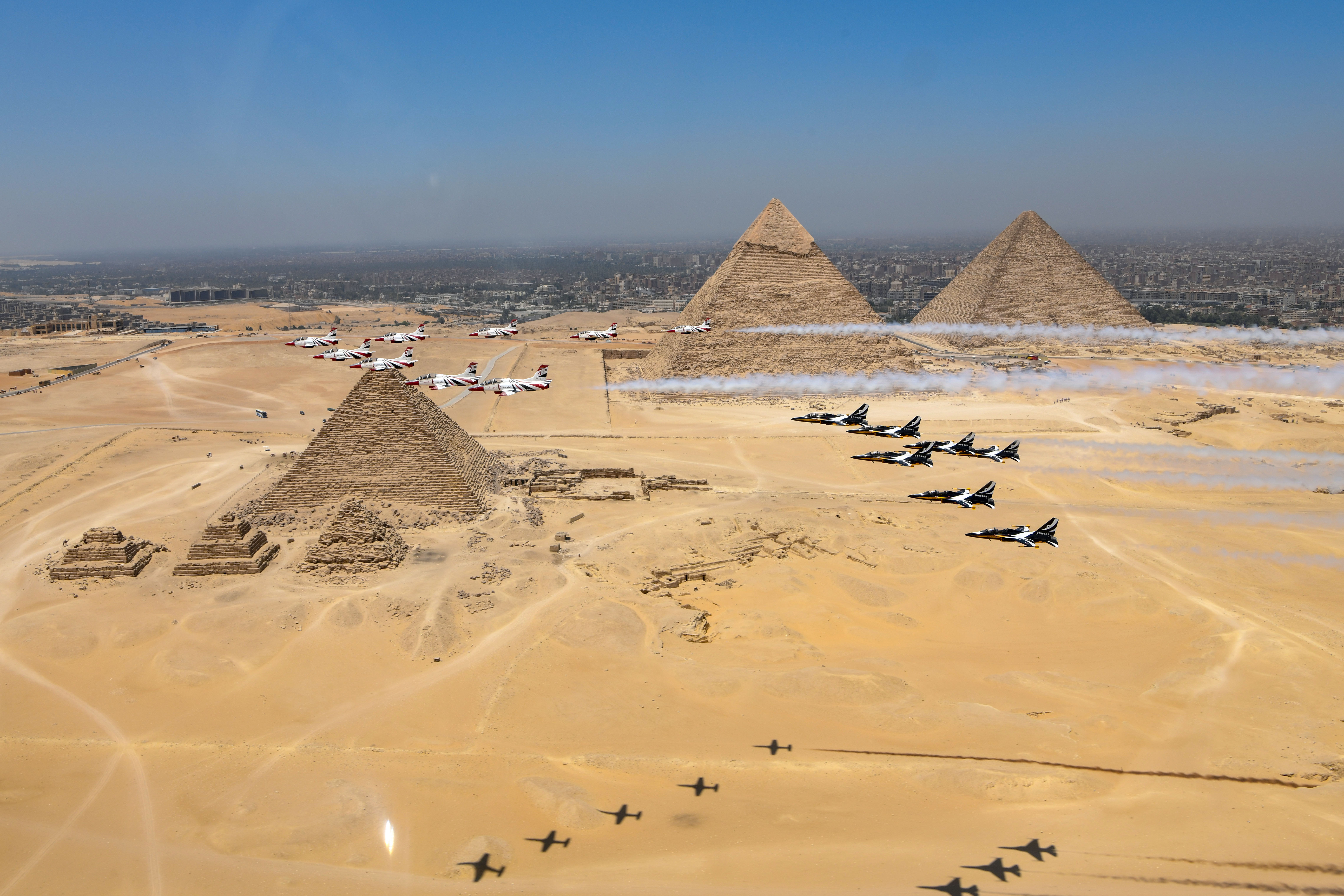 기자 피라미드 고공 이글쇼를 벌인 한국 공군. 근자 있었던 일인데 알고 보니 원전 판매를 위한 쇼였다.