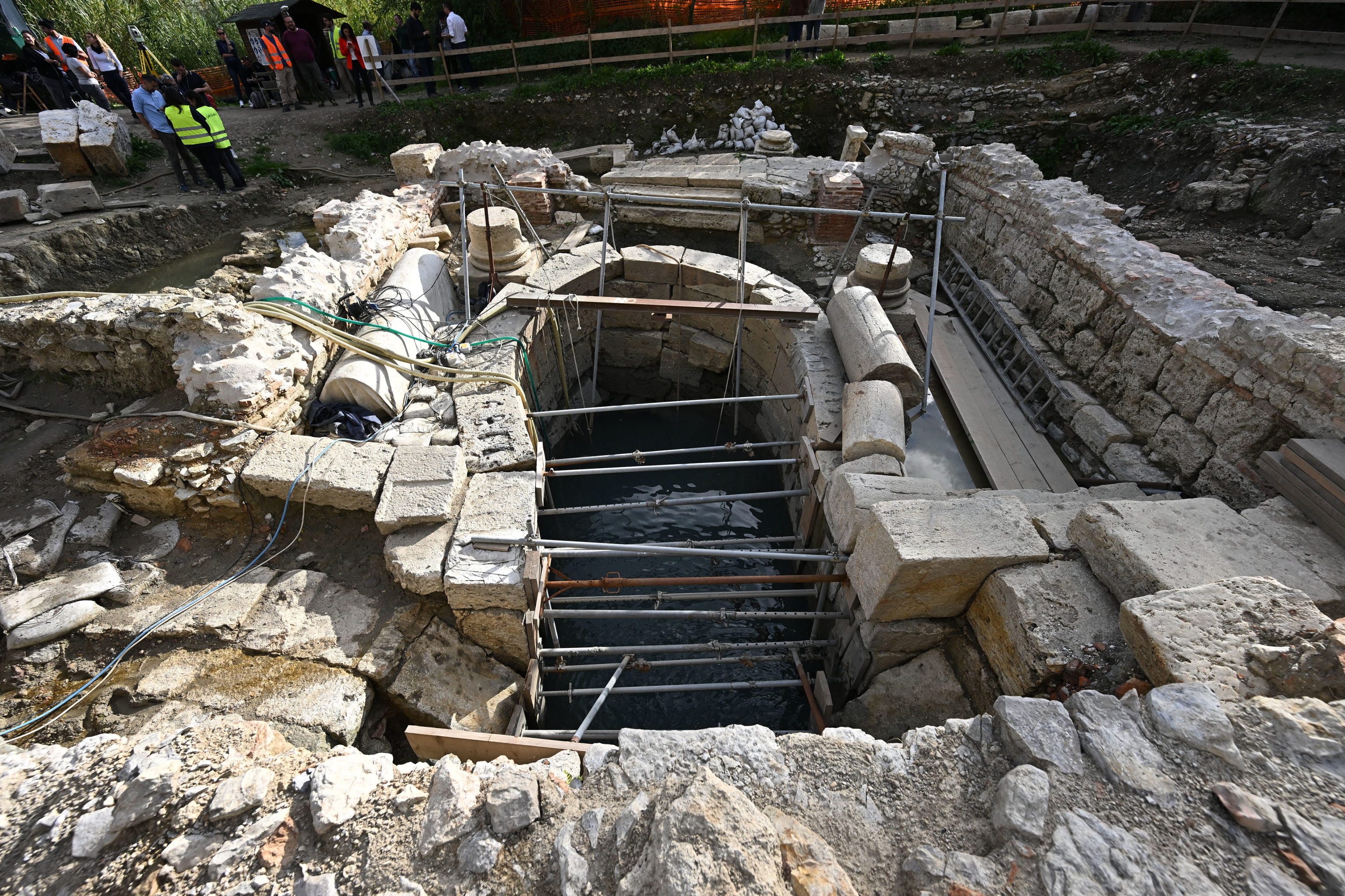 ‘Exceptional’ trove of 24 ancient statues found immersed in Tuscan spa