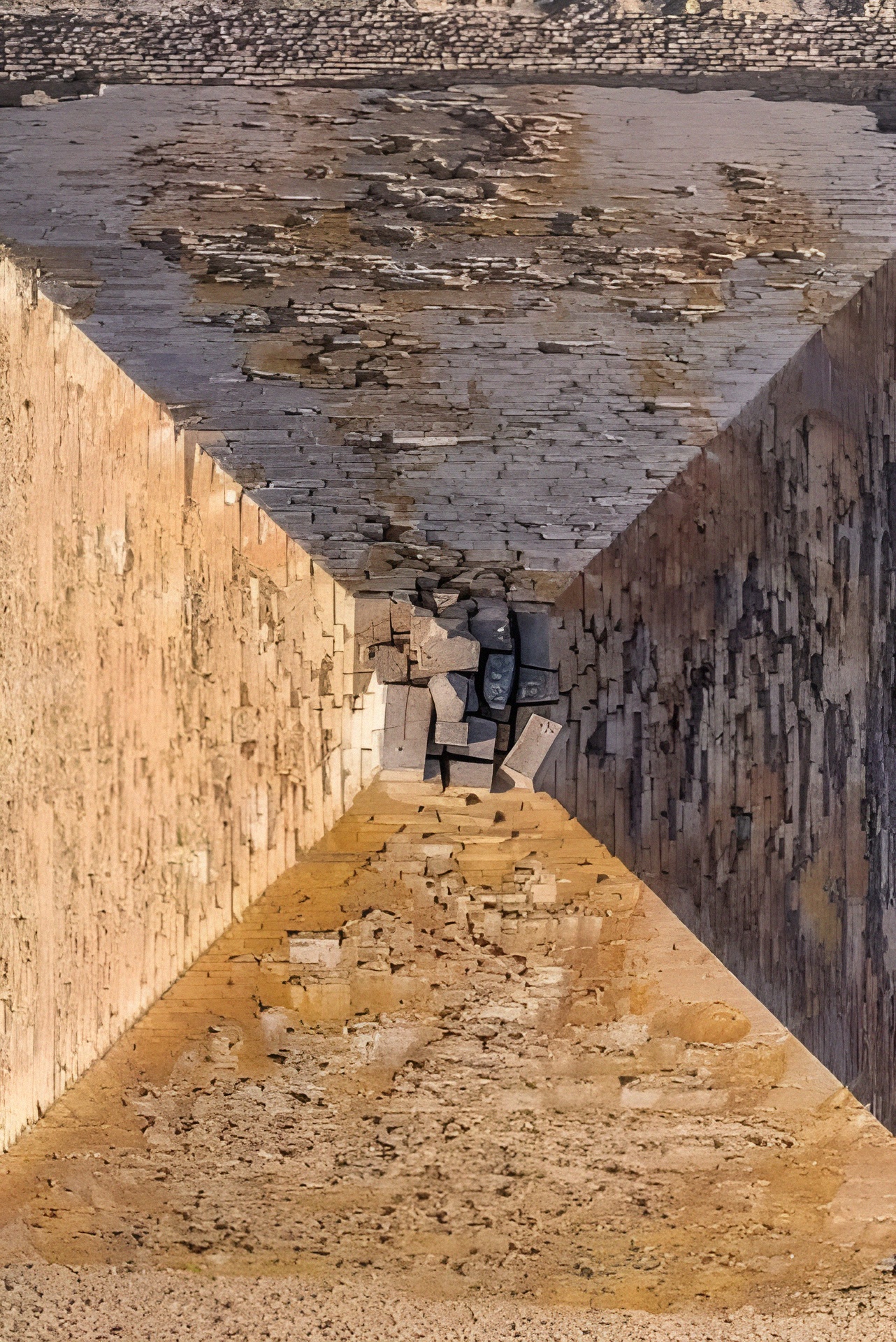 기울기는 53° 13' 도로 이웃 쿠푸 피라미드보다 가파르다.