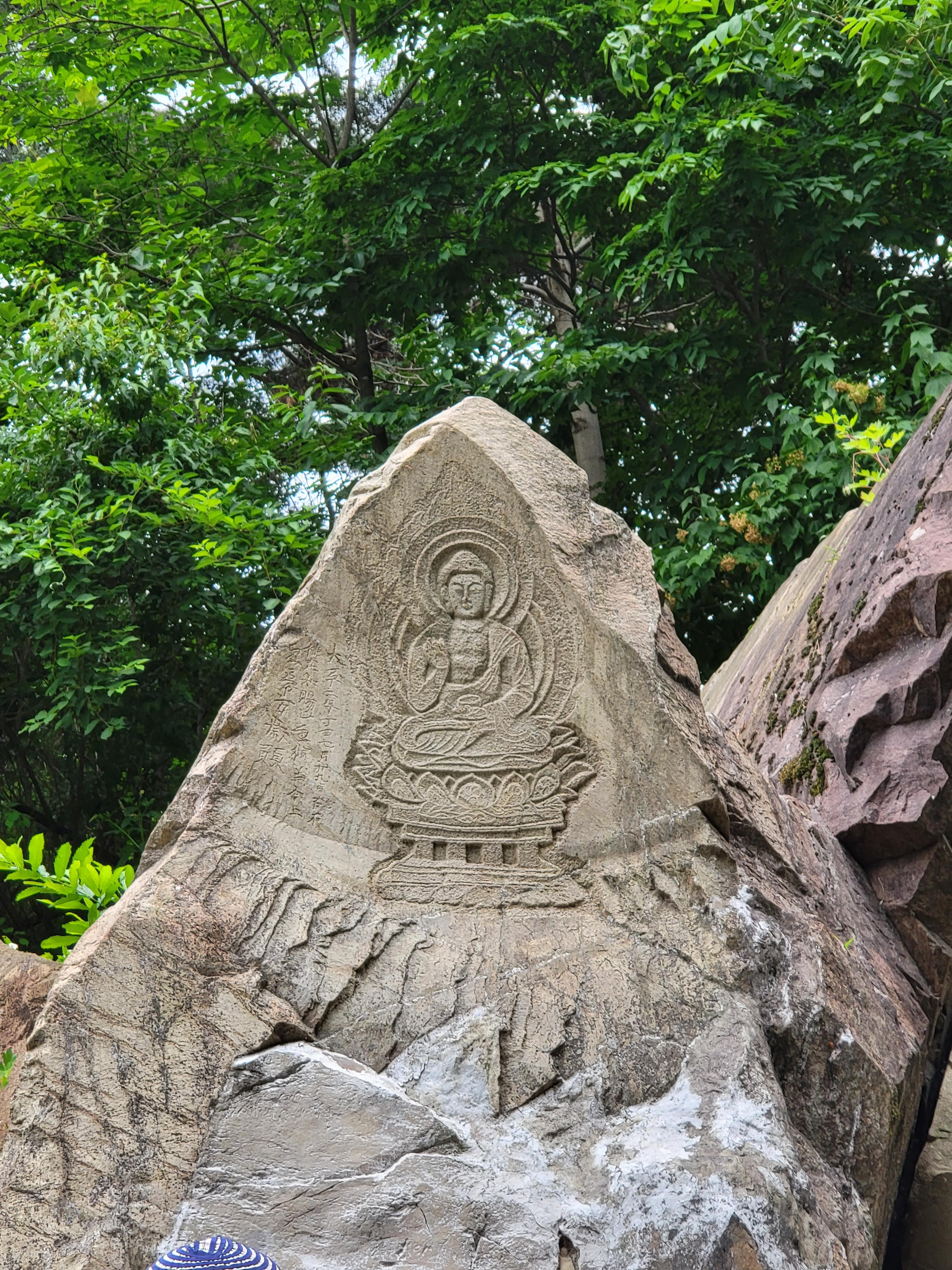 挽救深受疾病煎教的父生的英師佛被形象化,雕刻在南面的岩石上。