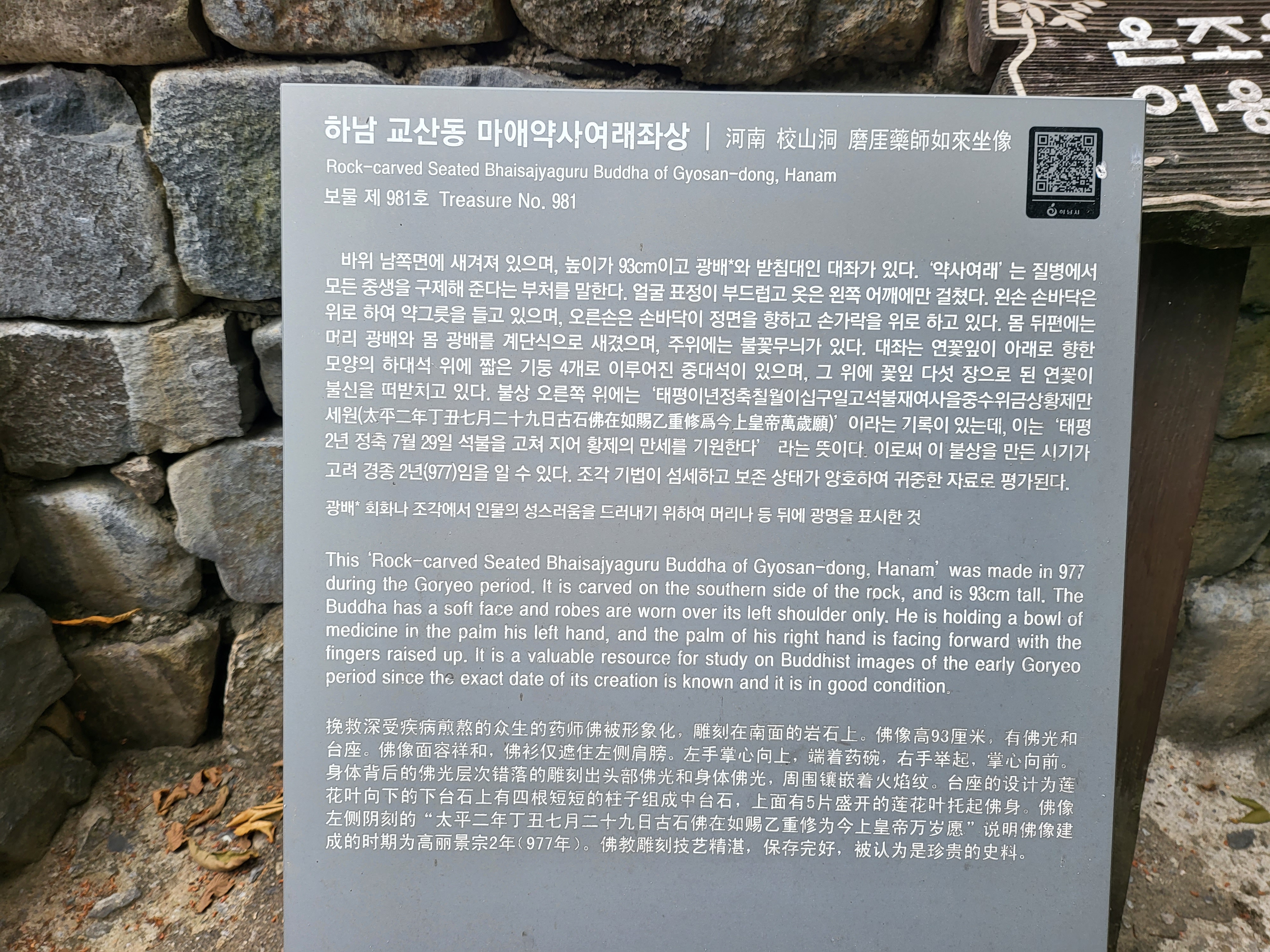 This "Rock-carved Seated Bhaisajyaguru Buddha of Gyosan-dong, Hanam' was made in 977 during the Goryeo period.