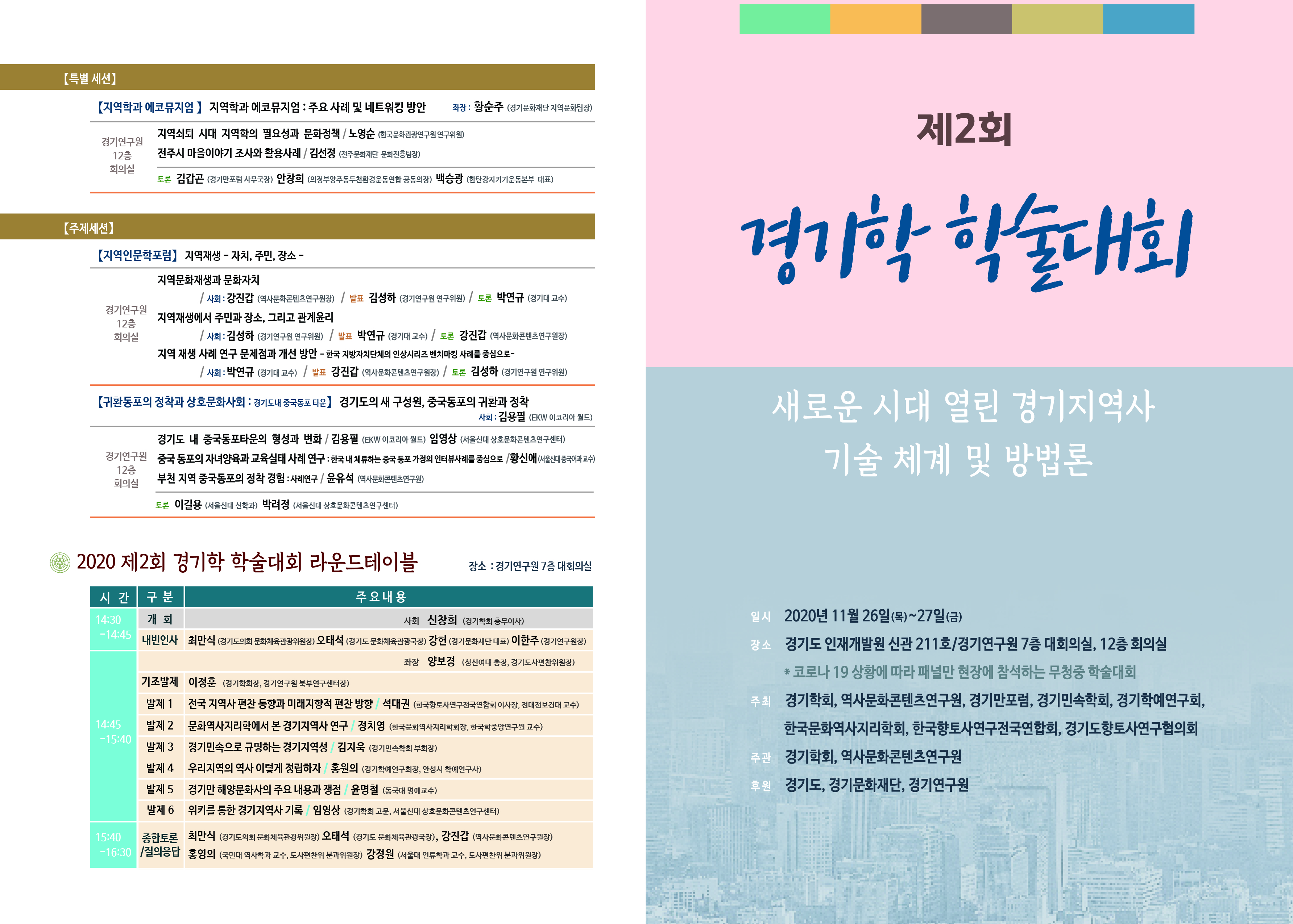 코로나로 인해 무청중 학술대회로 진행되지만, 경기문화재단, 경기연구원, 경기학회 유튜브 계정을 통해 영상으로 만날 수 있습니다.