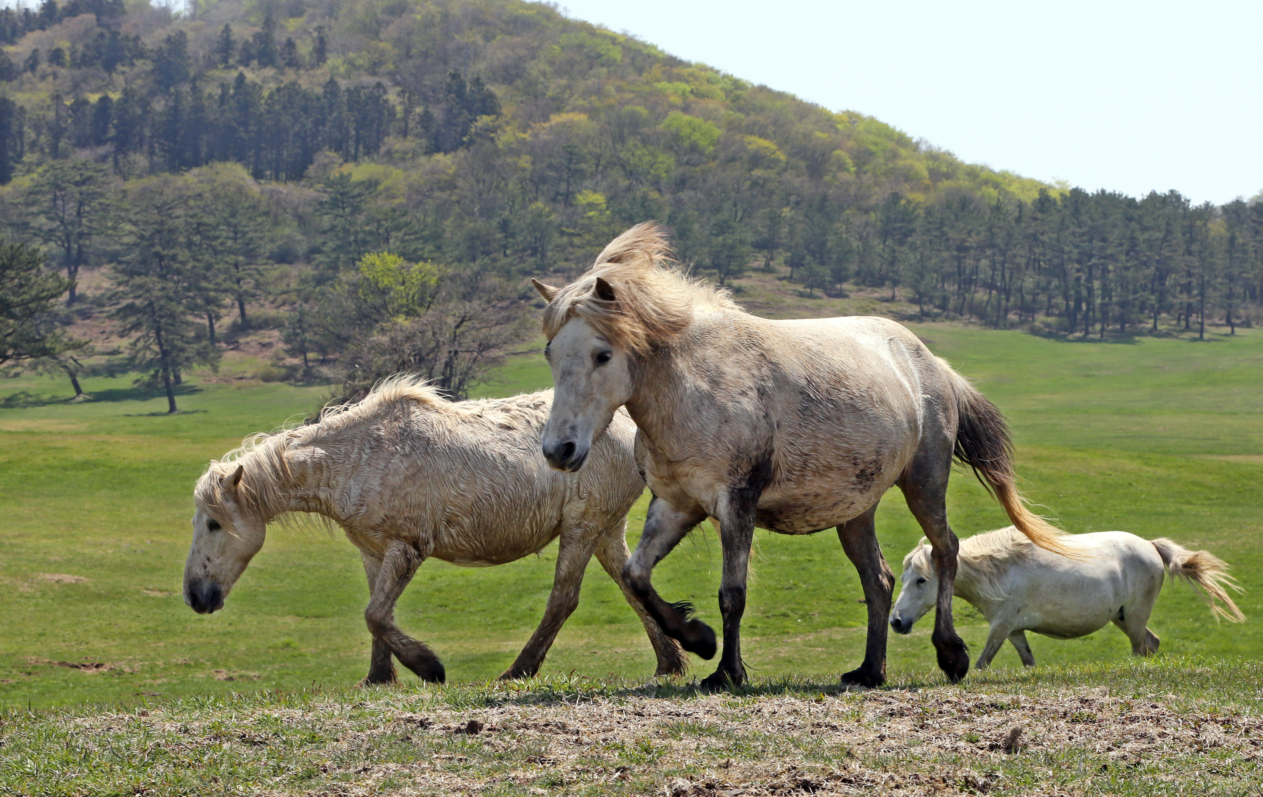 Jeju Horse is often called Jorangmal of Jejudo Island. The female is about 117cm long, and the male is about 115cm long. The horse is meek, with good resistance to disease and it is also called Gwahama or Toma. Gwahama means the horse that is short so it can go under the fruit trees. Though most Jeju Horses are brown, some are dark-brown, grey, and black. The rear of the horse is higher than its shoulder so its back is slightly sloped with a long waist. This horse is smaller than other breeds of horses. According to records, the Yuan Dynasty set up ranches in Jeju where the Mongolian horses were raised in 1276 (the reign of King Wonjong). The Jeju Horse of Jejudo Island was used for agriculture, and the number of horses used to be approximately 20,000, but the number of horses has decreased remarkably. To preserve this breed, the Jeju horse is designated and protected as a Natural Monument.