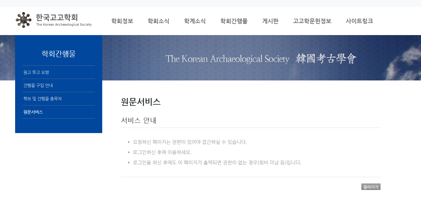 한국고고학회 오늘 현재 이 시간 현황이다. 여전히 가장 중요한 대국민 서비스인 기관지 논문 서비스도 하지 않는다.