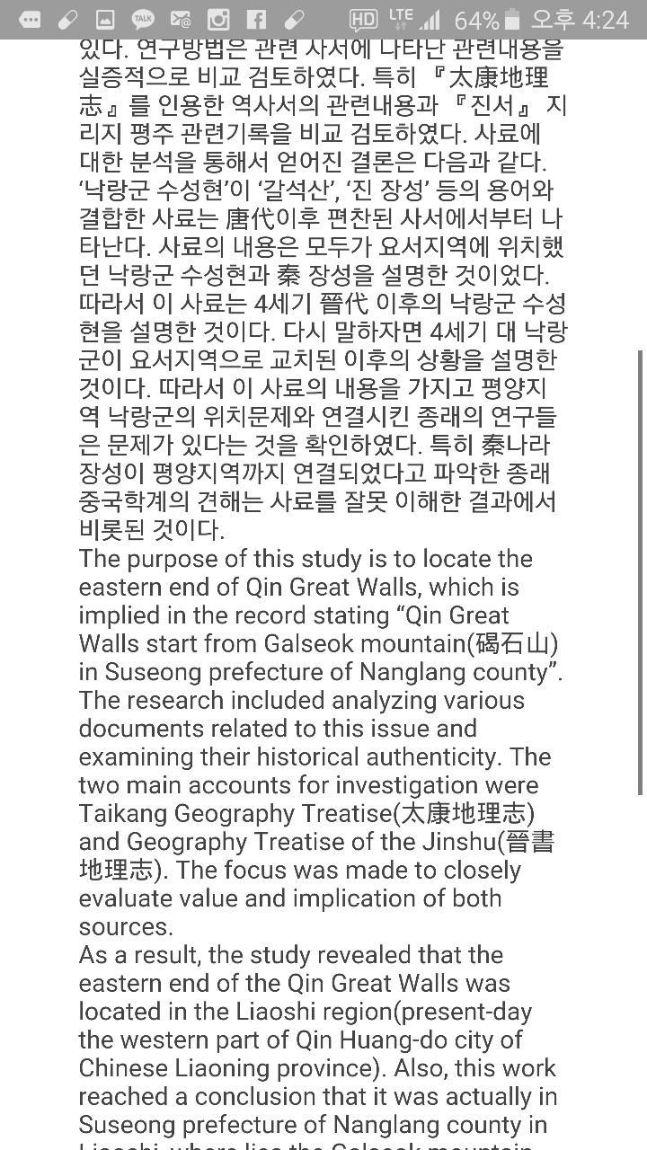 평양 낙랑설을 믿어 의심치 않는 사람들도 이상하게도 저 만리장성 동단東端 문제만큼은 단 한 놈도 한반도 안으로 끌어들이는 사람은 없다.
