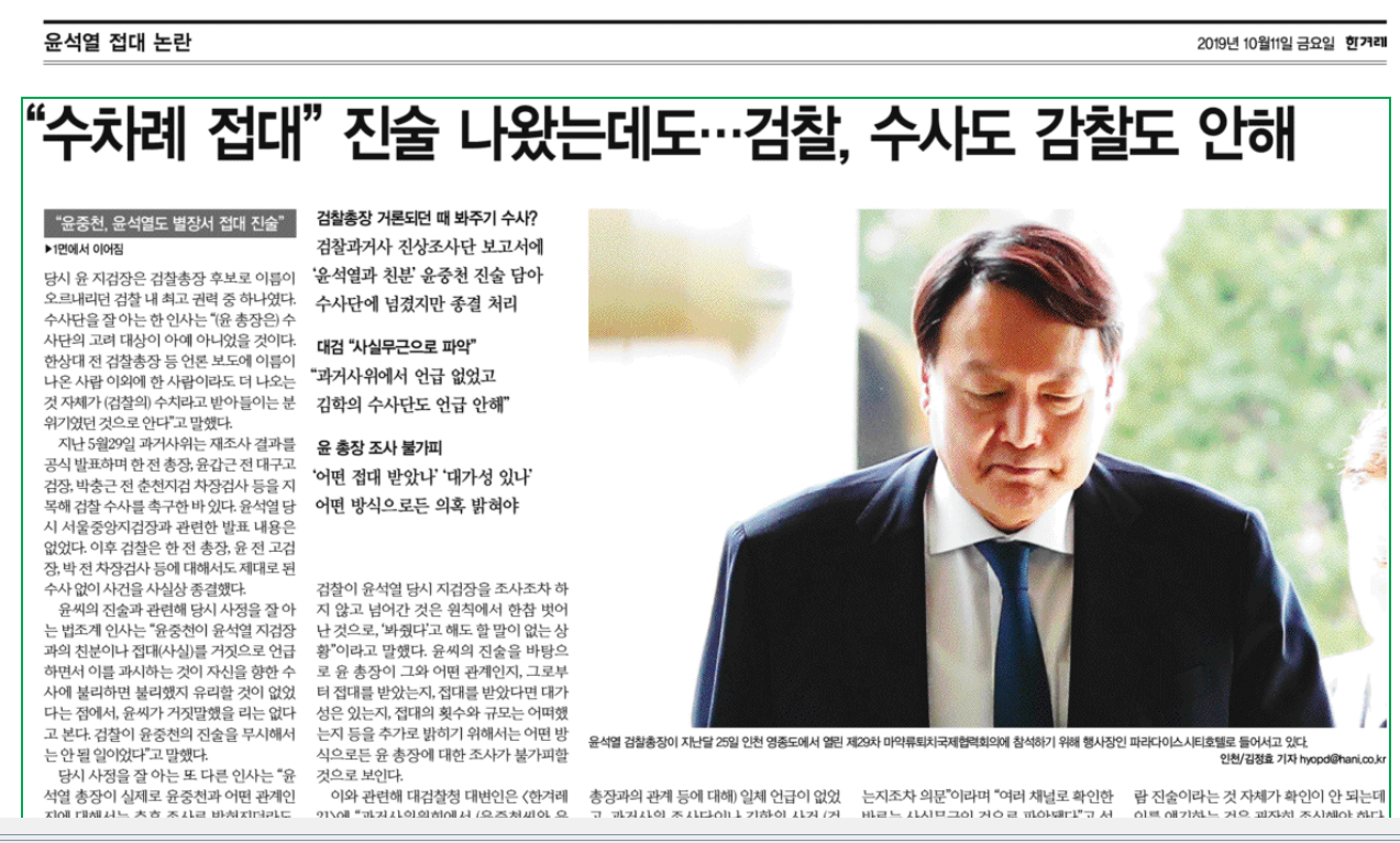 윤석열이 수 차례 김학의 별장에 초대되어 접대받았다는데, 도대체 무엇으로 증명을 하는지, 기사 자체가 결여된 상태였으며, 그것을 증빙하는 자료로 제시된 것은 간접적인 증언? 자료? 그런 것들이라 나로서는 한심한 보도라 규정했던 것이다.
