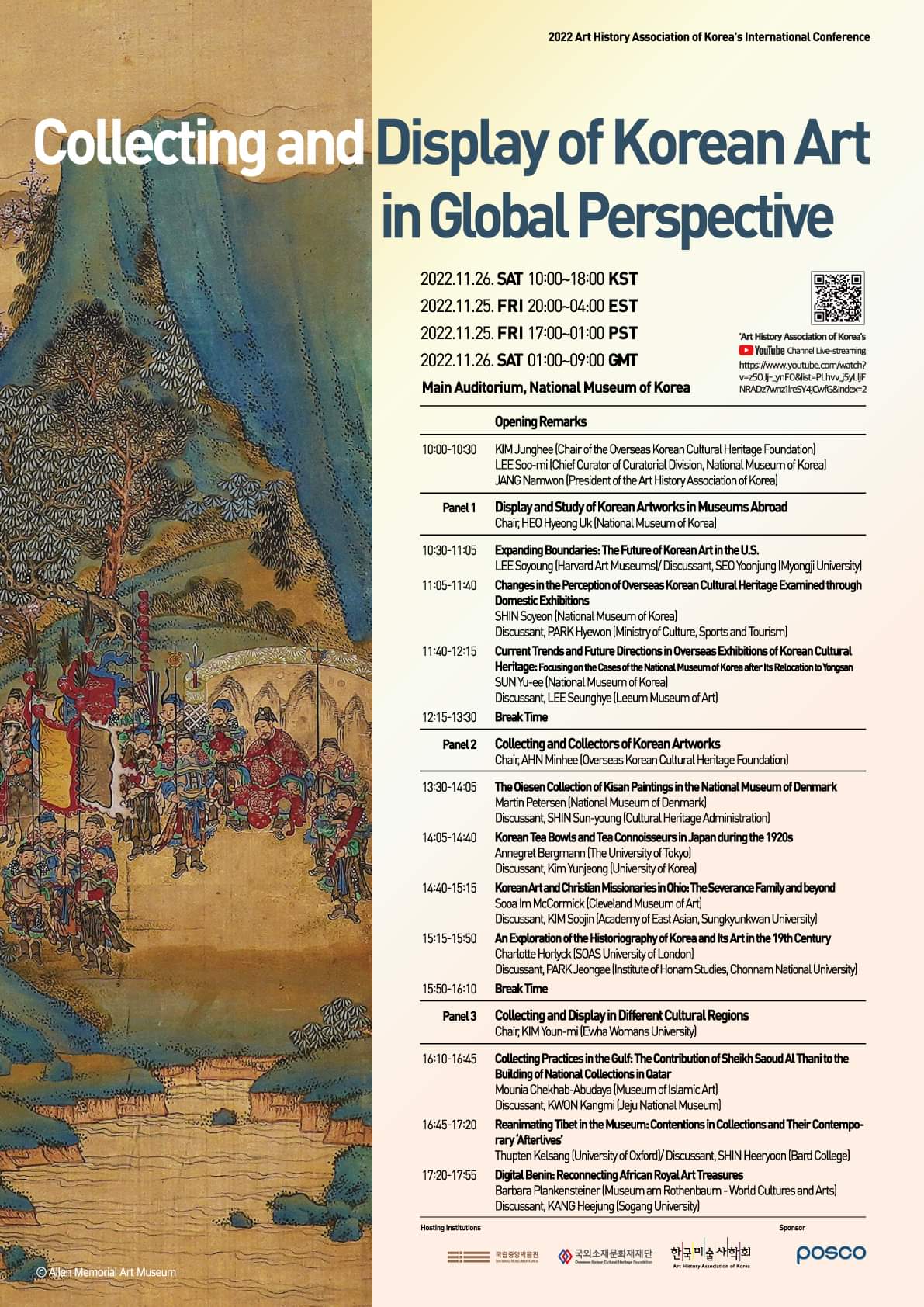 (사)한국미술사학회는 국립중앙박물관, 국외소재문화재재단과 함께 오는 11월 26일(토) 「세계 속의 한국미술, 그 수집과 전시」를 주제로 추계 국제학술대회를 개최합니다.