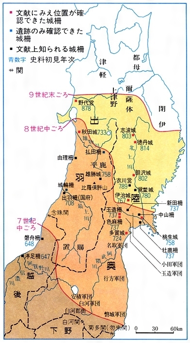일본의 7-8-9세기 북방진출선.
