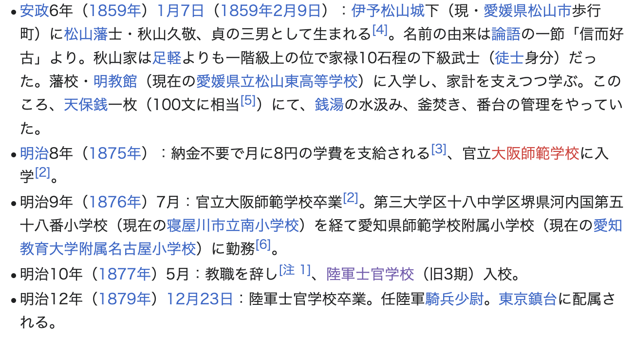 전술한 아키야마 사네유키의 형으로 러일전쟁 당시 일본기병을 이끌었던 아키야마 요시후루 秋山好古(1859~1930)의 젊은 시절 행적을 보자.