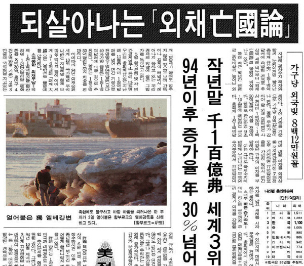한국경제의 외채는 그런 측면에서 이해해야 한다. 이 외채의 급증을 70-90년대 당시 소위 한국의 사회과학-인문학계 주류는 모래성과 같다고 비웃는 사람이 대부분이었는데, 외채가 한국경제의 도약기에 도입되지 않았다면 한국경제의 성장 자체가 불가능하였다 할 수 있다.