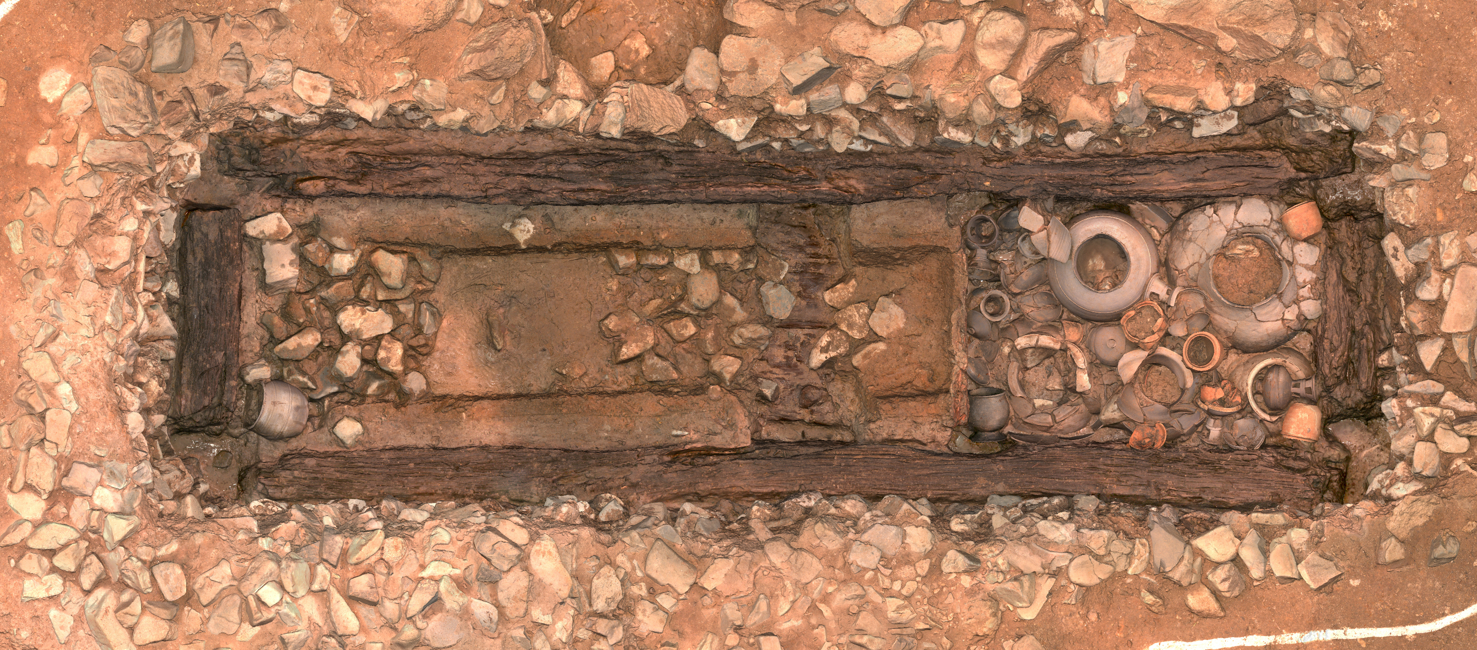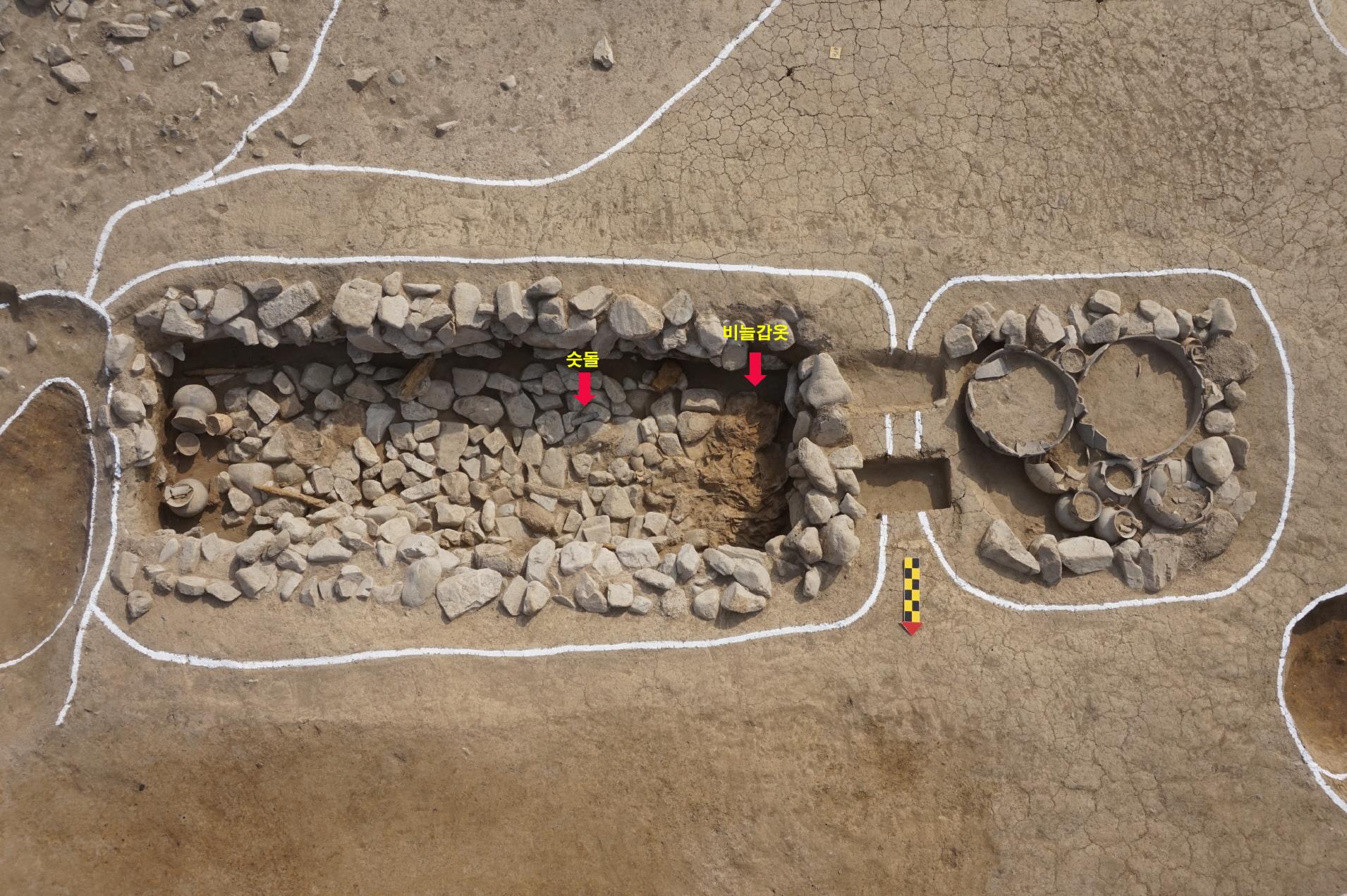 관 내부에는 인골이 온전한 채로 발견됐다. 안에서는 유개고배有蓋高杯를 비롯한 토기류 11점이 발견됐다.