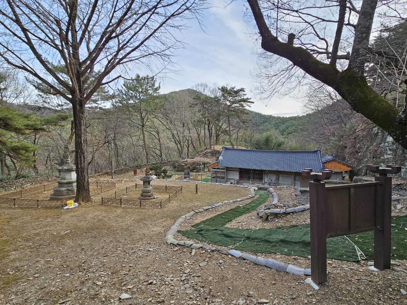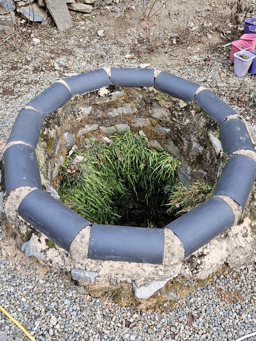 한쪽엔 아마도 절이 있을 때부터 있었을 우물도 있고, 석탑 부재도 몇 놓여 있었다.