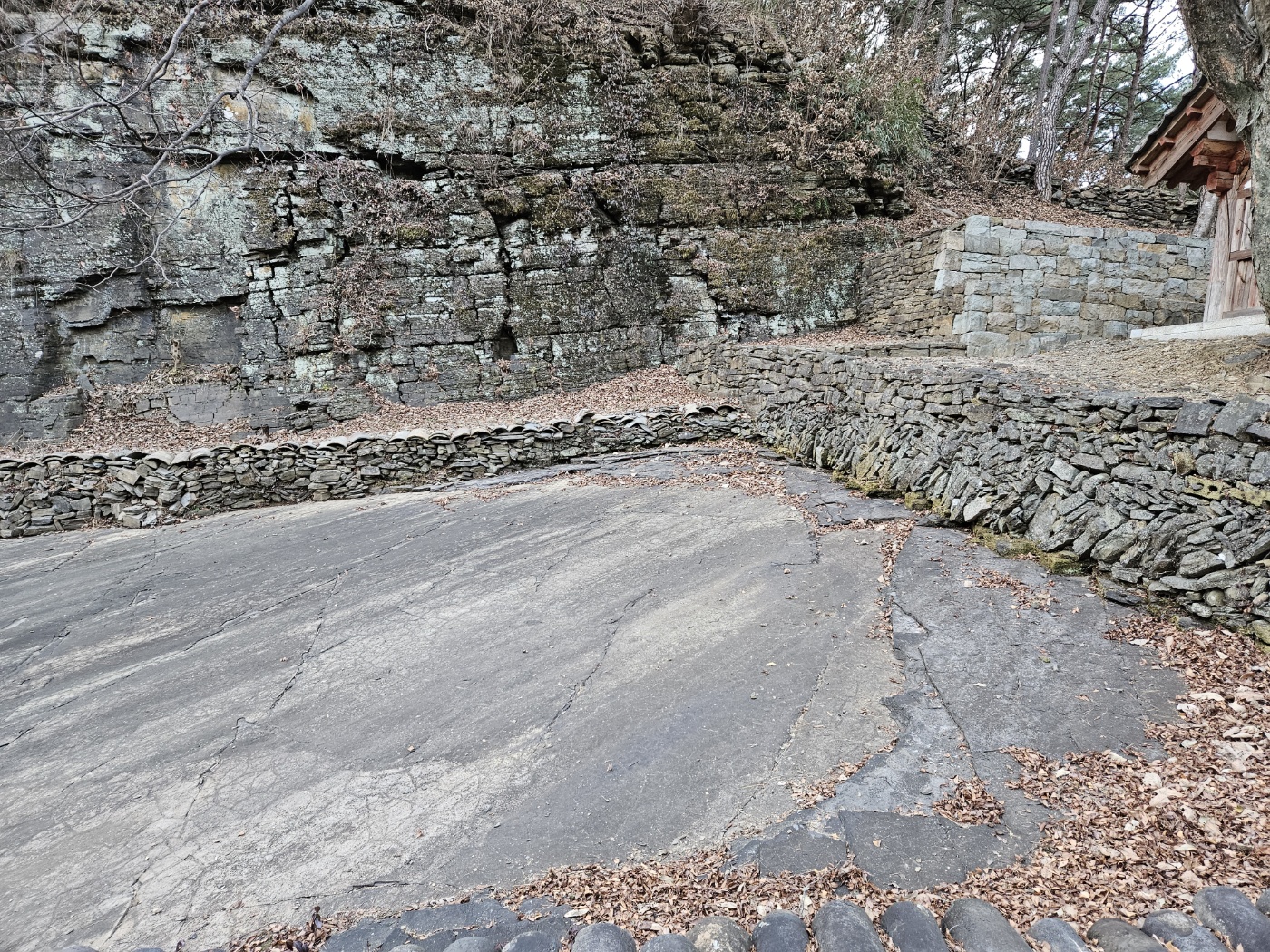 큼직한 너럭바위가 있다. 원래 탑이 그 위에 있었다는데, 터 규모로 봐선 고려시대에도 절 건물은 너럭바위 뒤가 아닌 앞에 들어섰을 것이다.