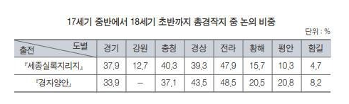한반도는 최근세에 이르기까지도 총경작지중 논이 차지하는 비중은 평안도나 황해도의 경우