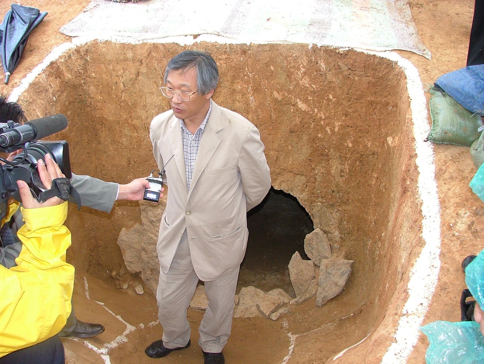 당시 이 유적을 충청문화재연구원이 했고, 당시 박순발 충남대 교수가 원장이었던 까닭에 조사단을 대표해 방송사들 인터뷰를 하는 장면이다.