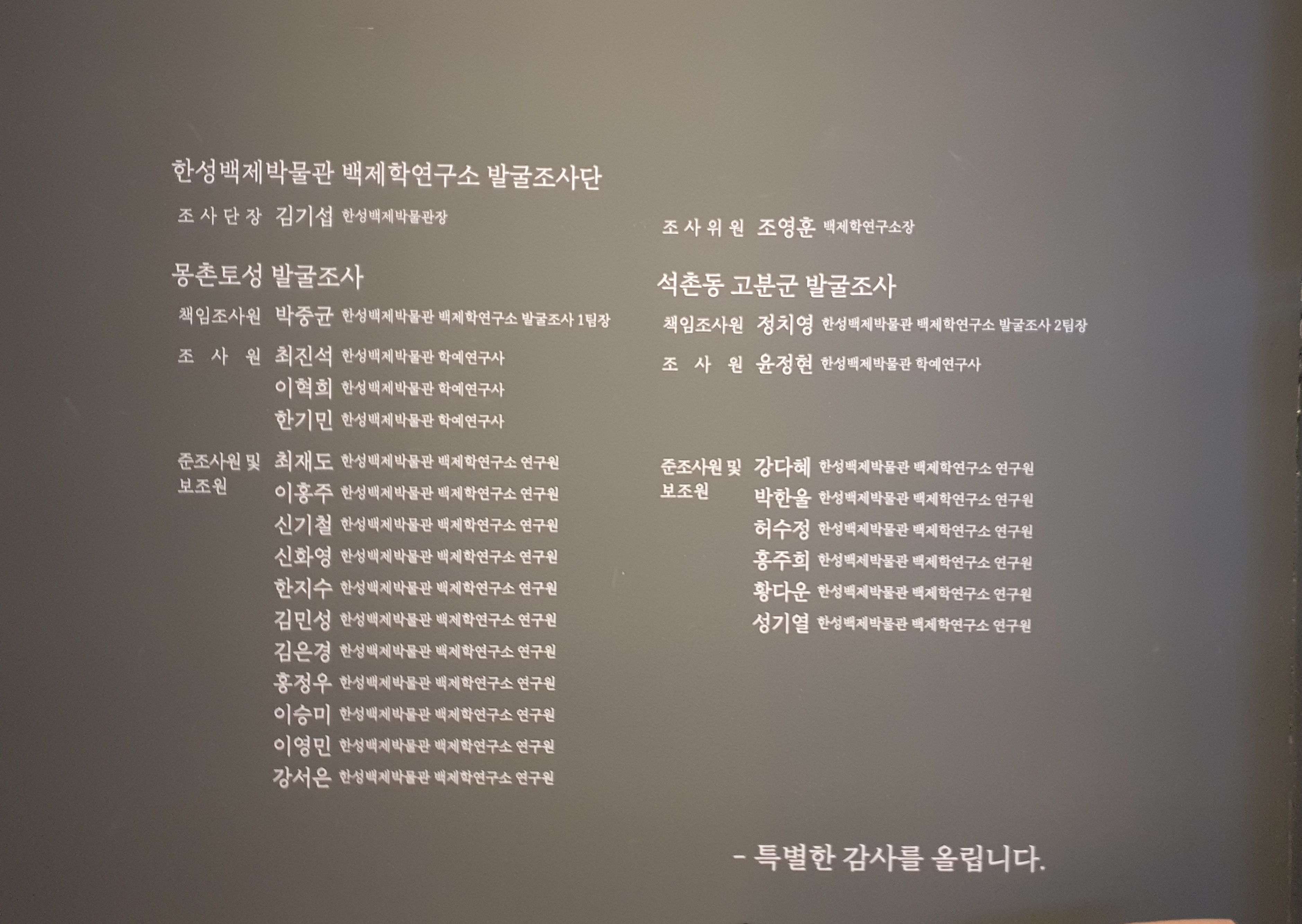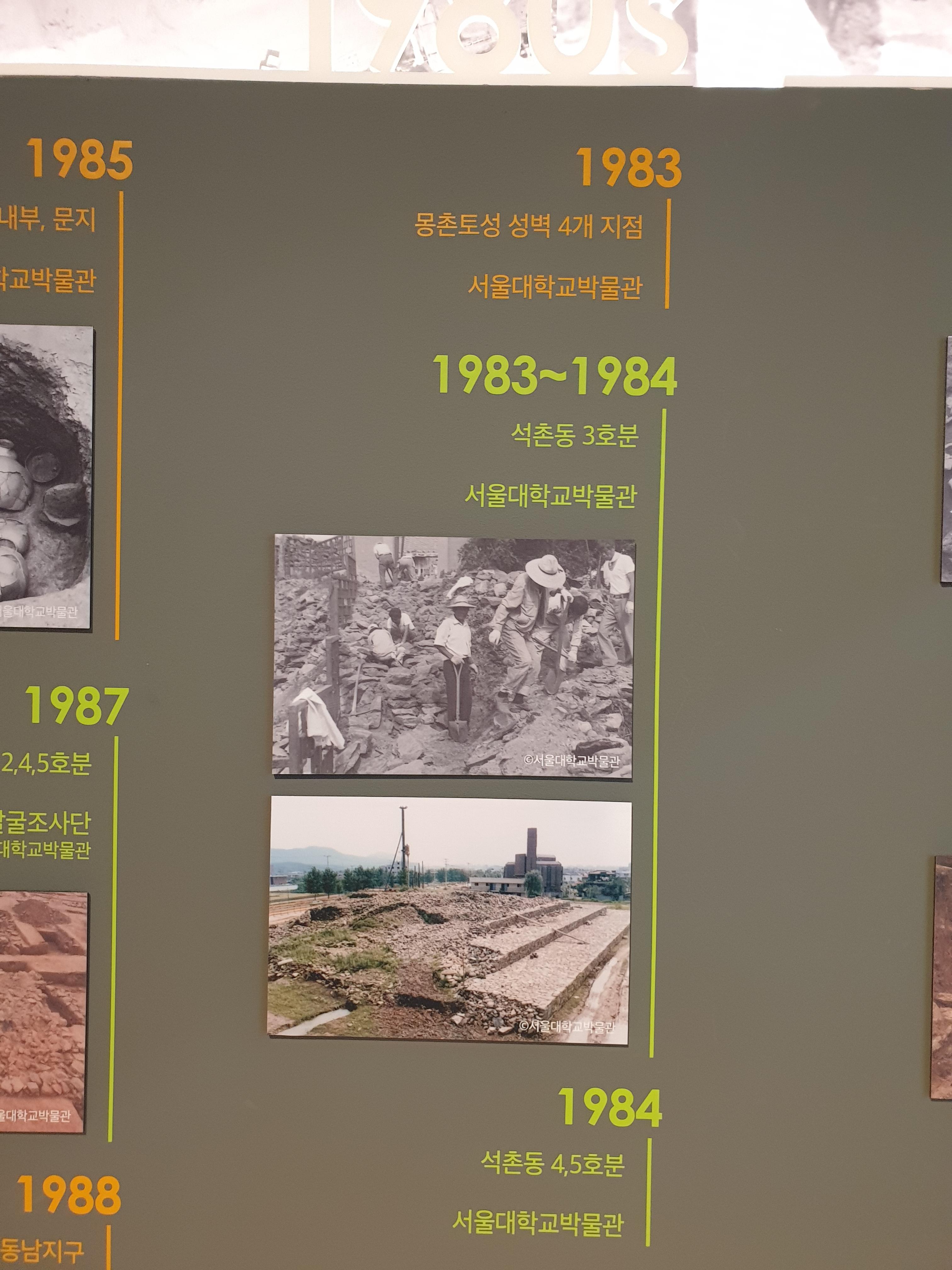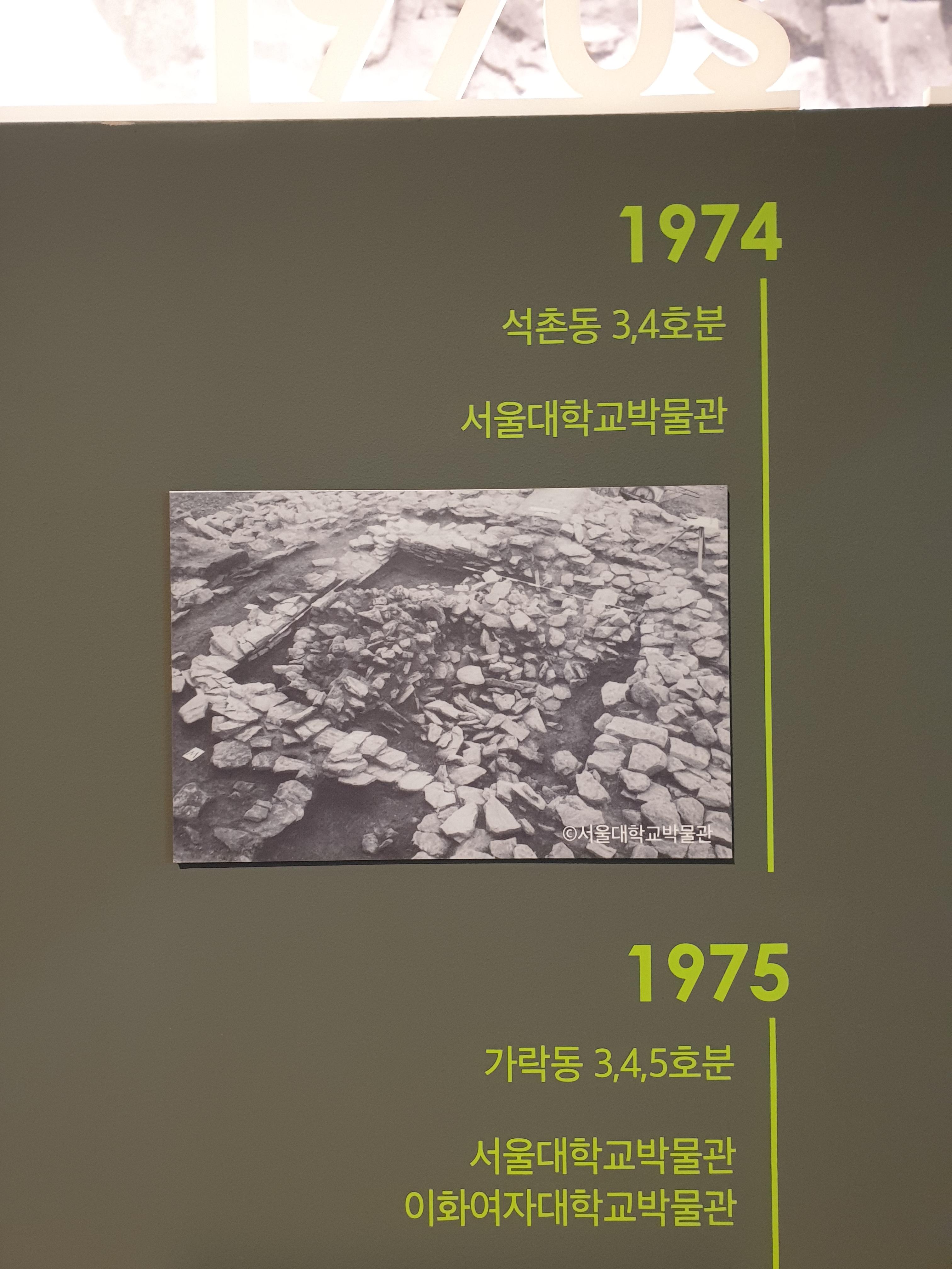 한성백제박물관은 몽촌토성과 석촌동고분군 발굴에 집중했으니 이 중 전체구역이 사적으로 묶였고 공원으로 조성되어 이렇다 할 보호장치가 필요없는 몽촌은 순전히 학술연구차원에서 80년대 발굴이 워낙 개판이었던 까닭에 새로운 발굴이 필요했던 반면, 석촌동고분군은 느닷없는 맨홀 퐁당 사건이 벌어지는 바람에 느닷없이 발굴조사가 시작되었다.