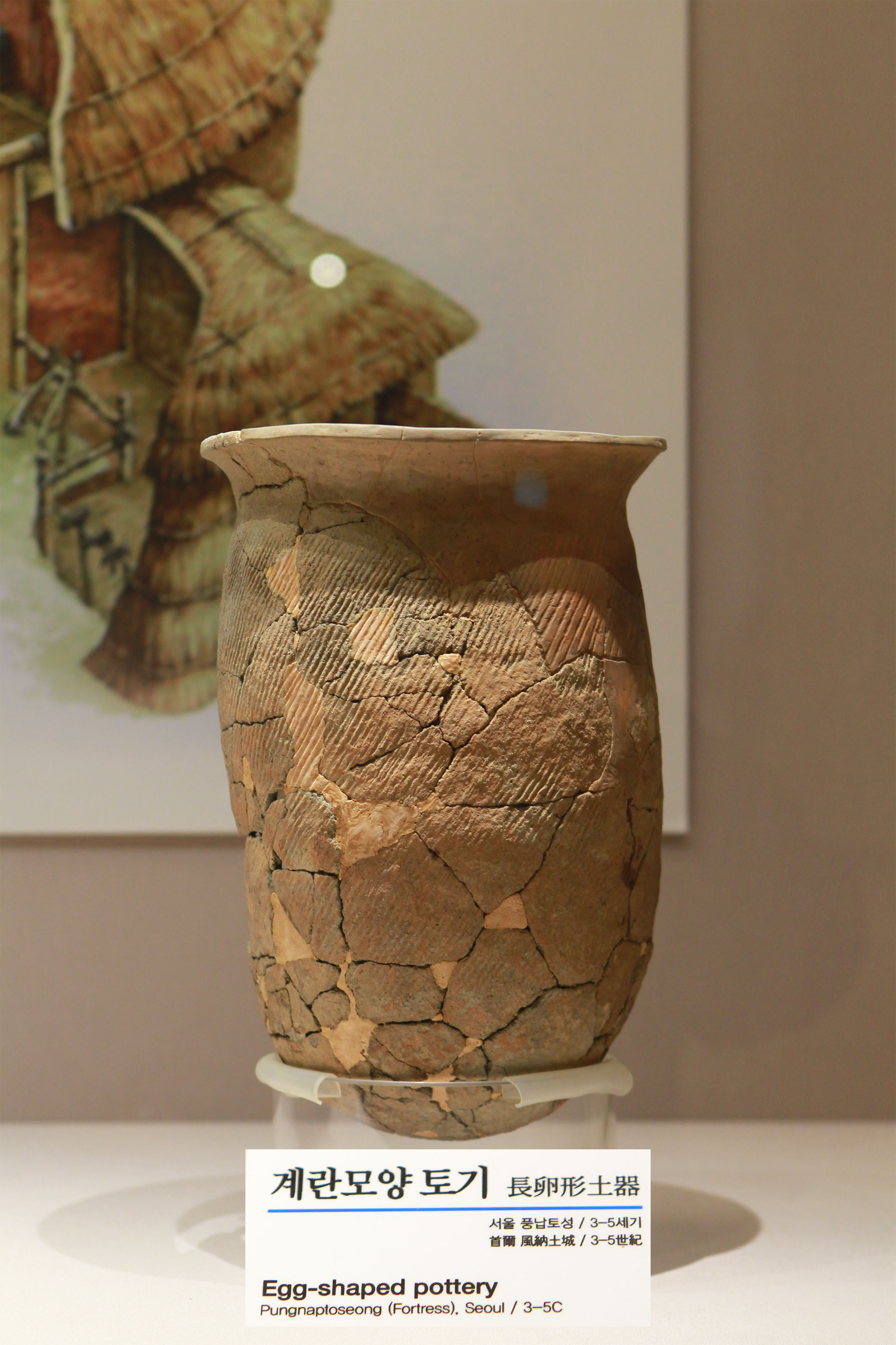 3. 계량모양 토기....그 모양이 계란을 닮았다는 말은 코키리는 코가 길다는 말과 같다. 저런 그릇이 보통 부엌에서 등장하는 것으로 보아 요리용 곡물 같은 것을 저장한 것으로 보인다는 정도의 설명이 있으면 좋지 않을까?