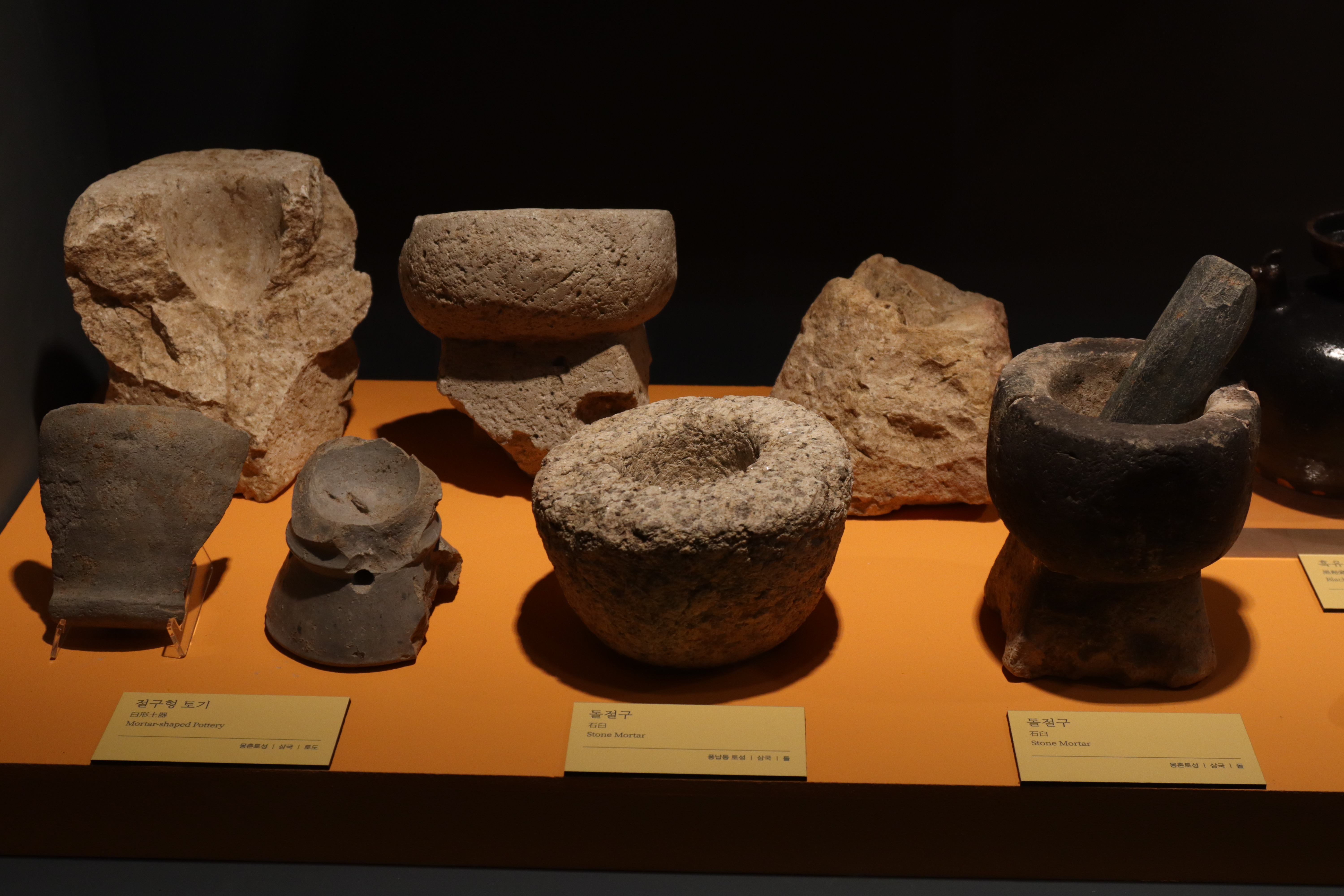 2. 몽촌토성 출토 돌절구...이들이 돌절구다라는 안내판은 실은 “나는 사람이다”는 설명과 같다. “돌절구가 많이 보이는 것으로 보아 곡물 같은 것을 빻아 요리했음을 짐작한다”는 정도로 설명이 있어야지 않을까?