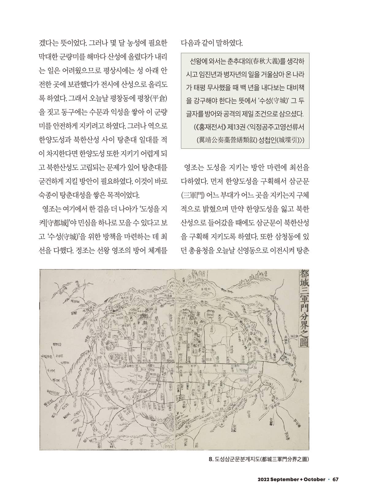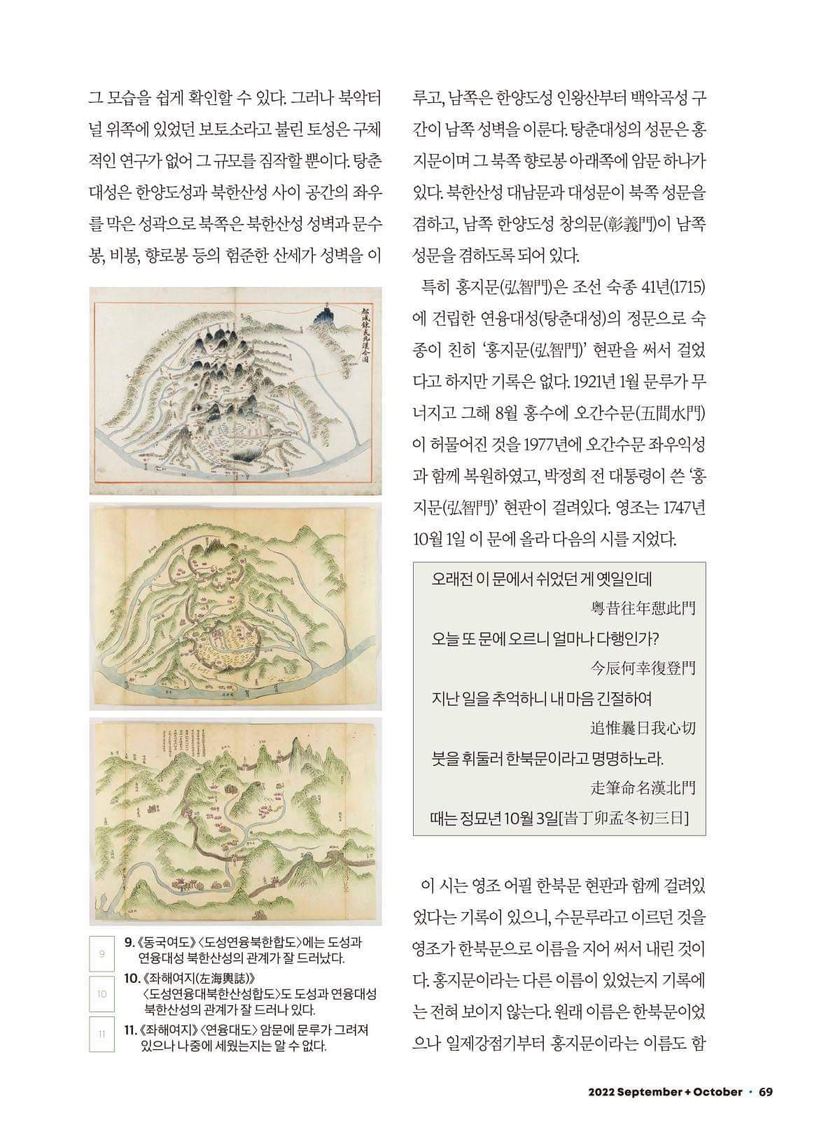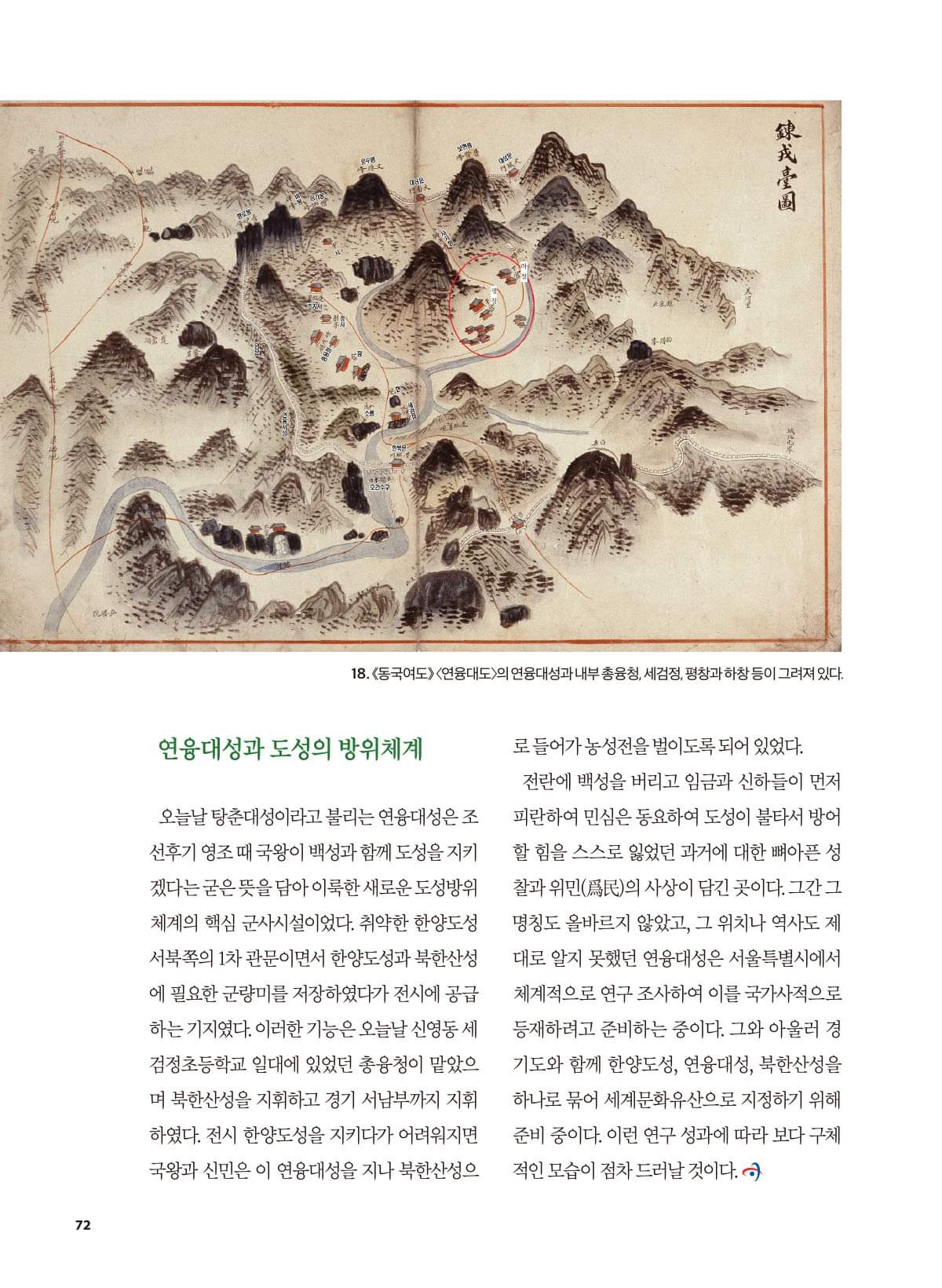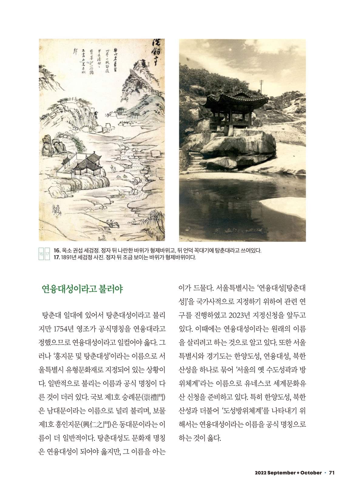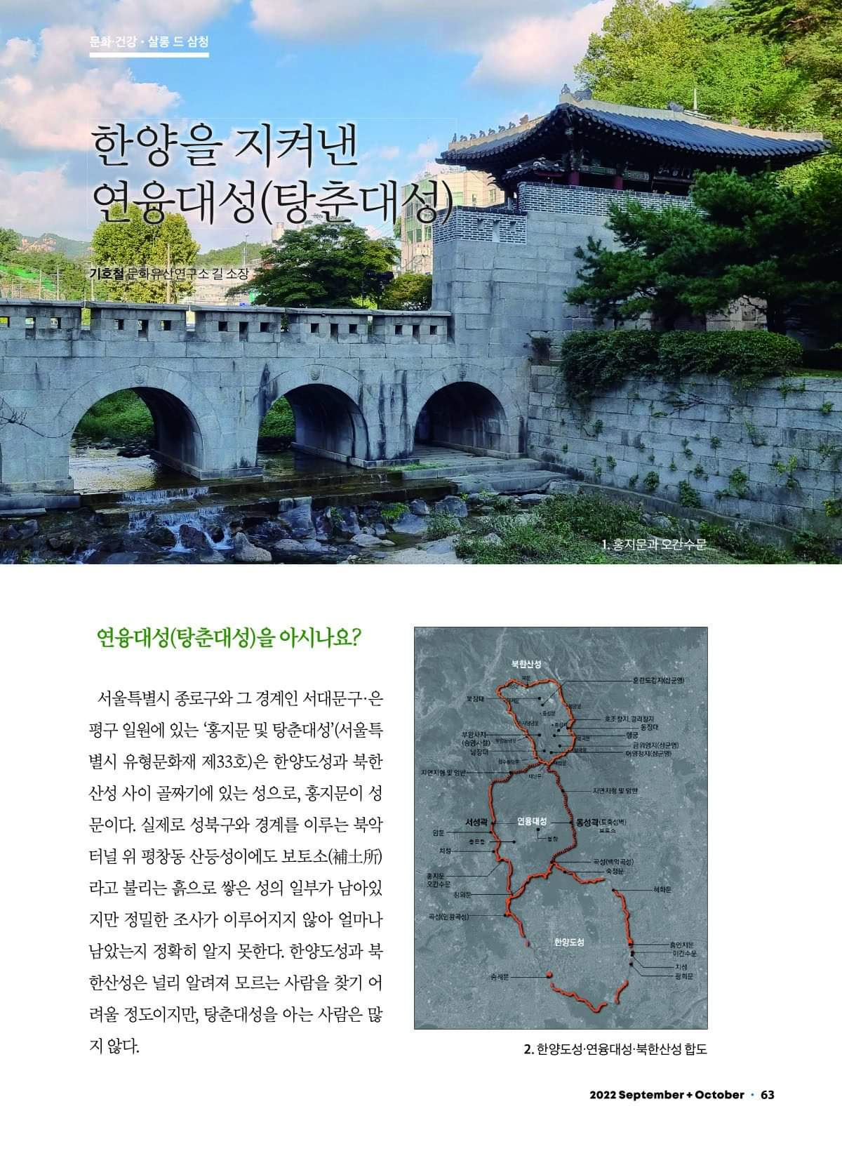 감사원 《감사》 2022년 9, 10월호 .vol164에 실린 〈한양을 지켜낸 연융대성(탕춘대성)〉입니다.