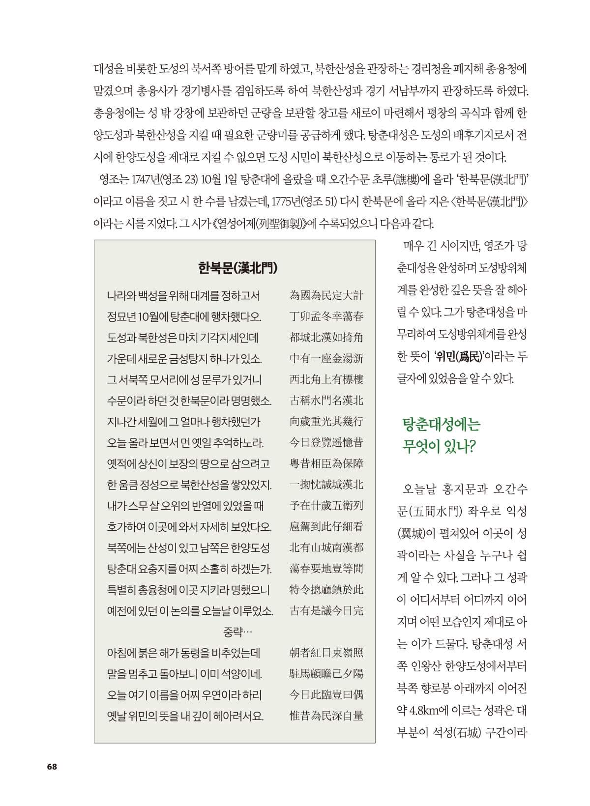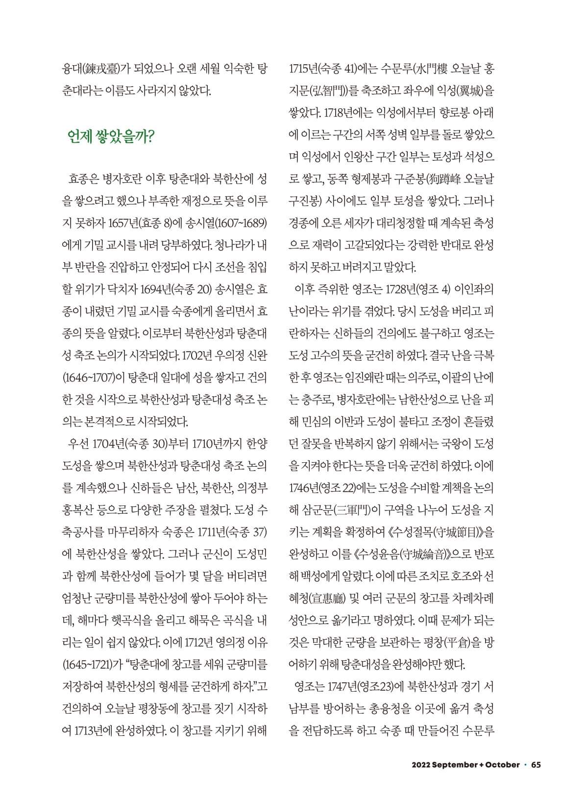 감사원 《감사》 2022년 9, 10월호 .vol164에 실린 〈한양을 지켜낸 연융대성(탕춘대성)〉입니다.