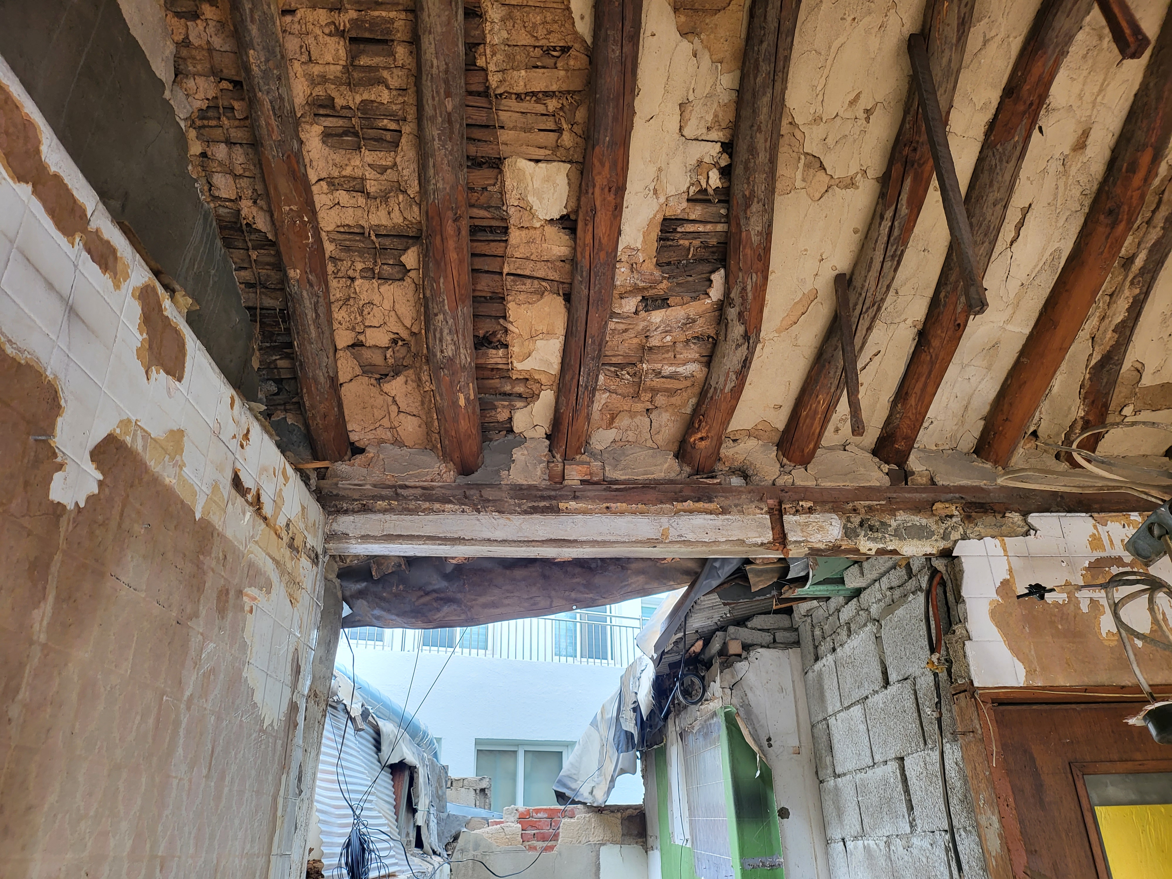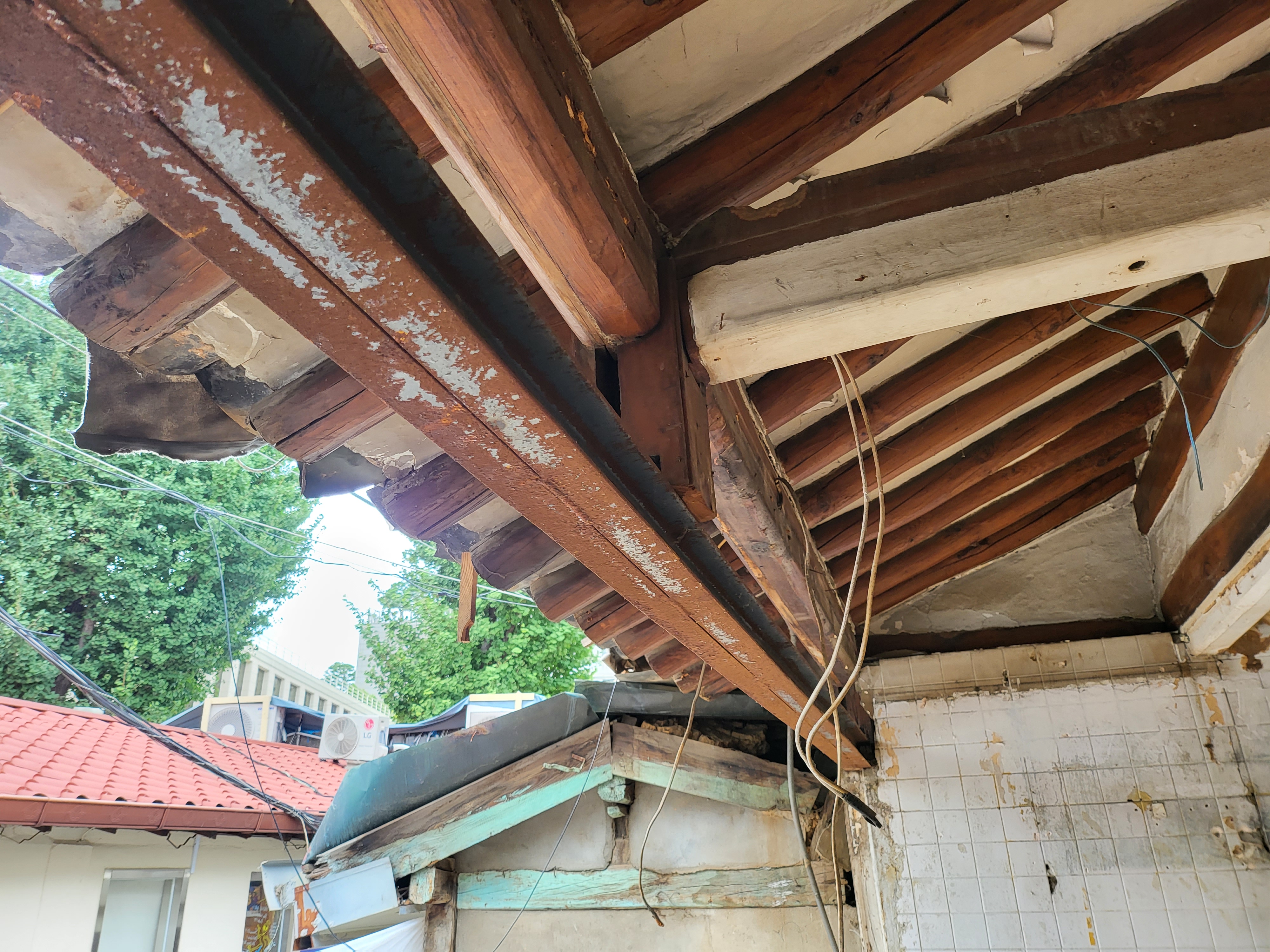 보다시피 겉으로는 기왓장 올려 그럴 듯하게 보이지만, 그 지붕 안쪽은 보면 실상 형편 없어,