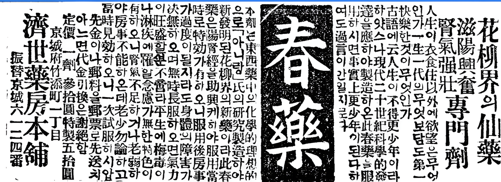 1922년 현재 동아일보에 실린 춘약 광고로,