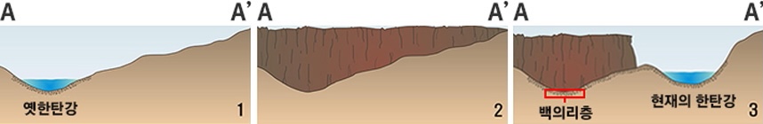 이 백의리층이 중요한 이유는 용암이 흐르기 전 이곳이 옛 한탄강의 유로였다는 걸 알수 있기 때문이에요. 다시말하면 현재의 한탄강 유로와 옛 한탄강의 유로가 달라졌다는 걸 보여주죠.