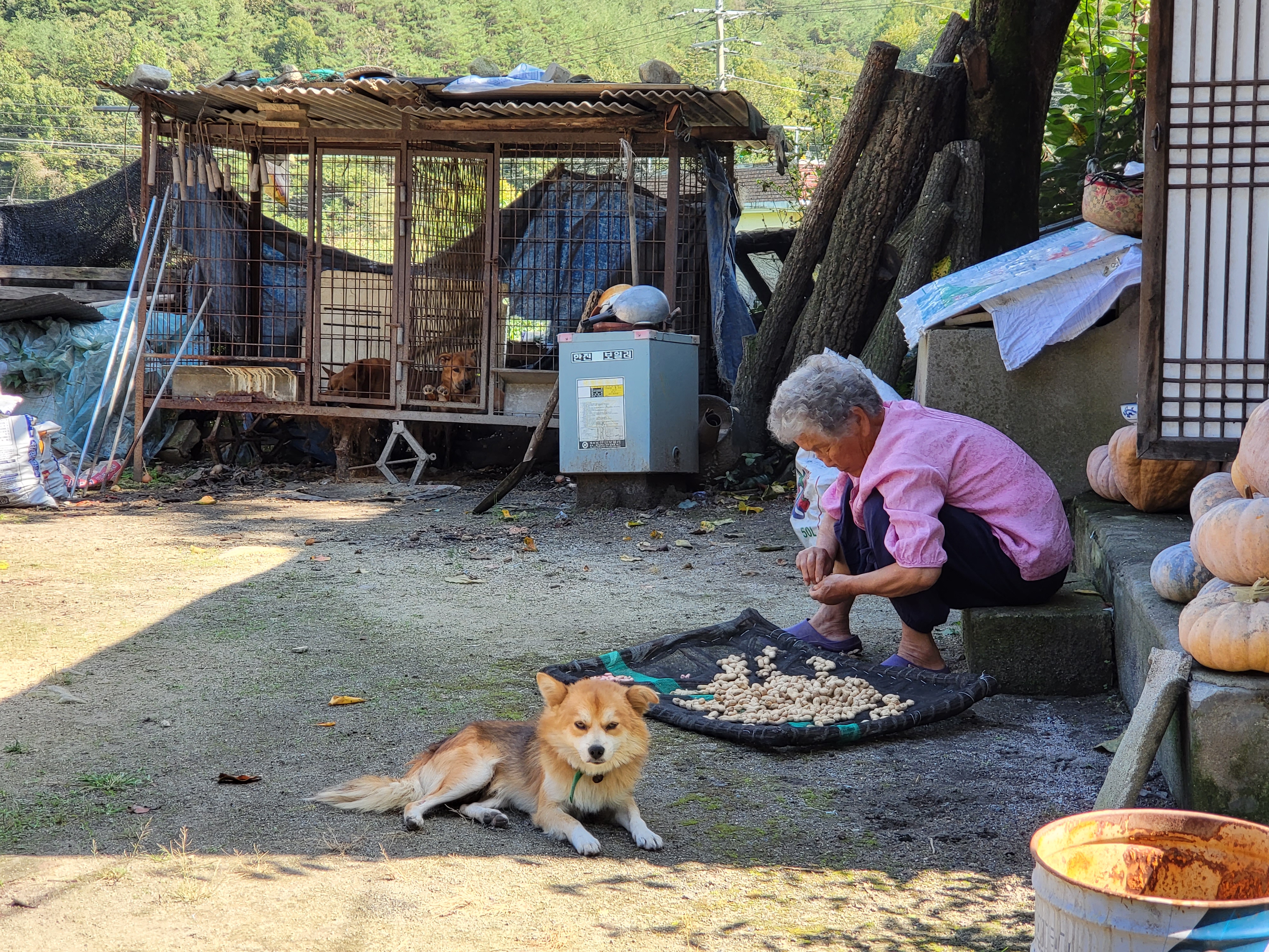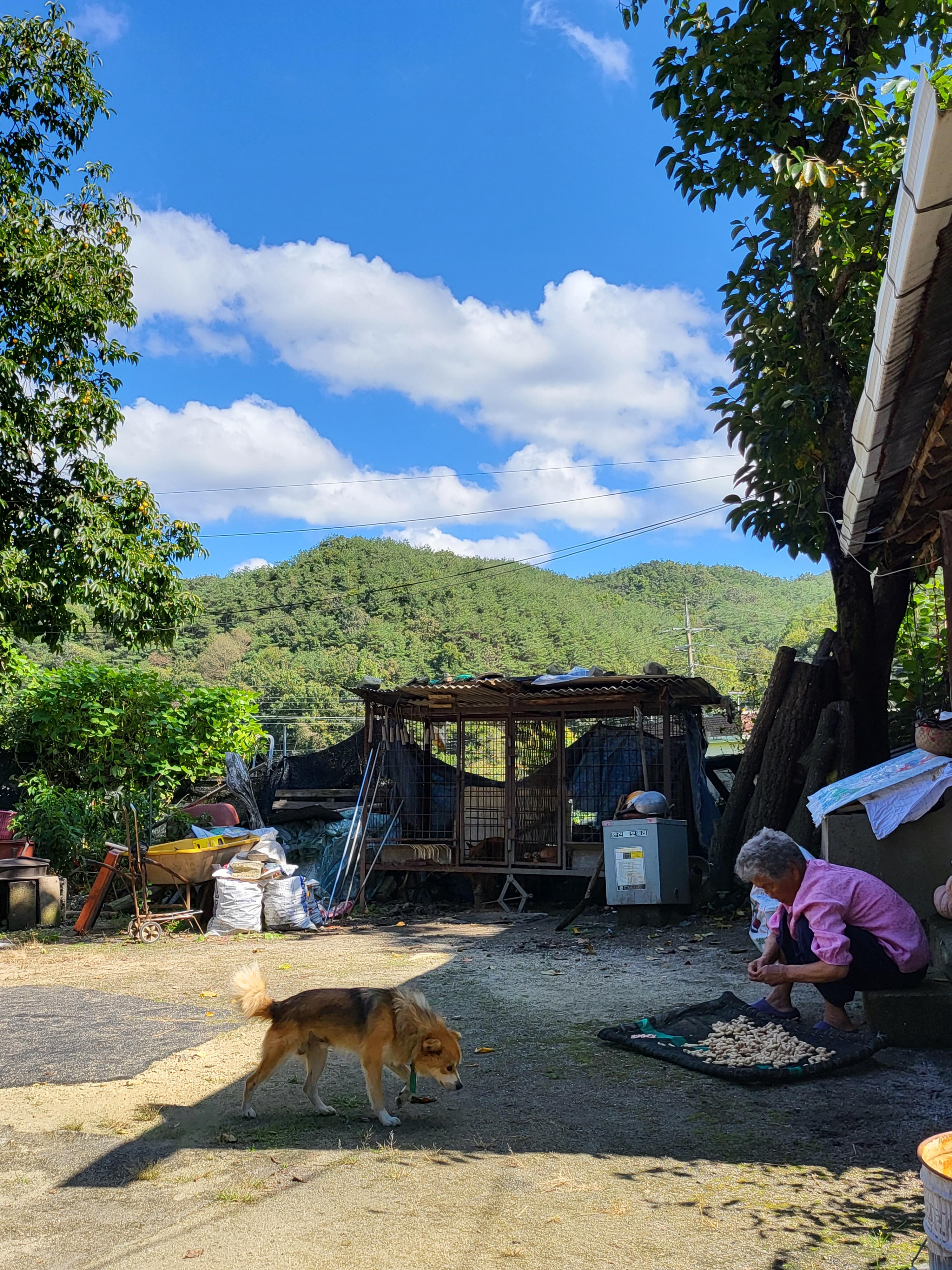 마당 가을빛에 늘어지게 하품하던 놈이 심심해졌는지 어슬렁하며 그늘을 찾아든다.
