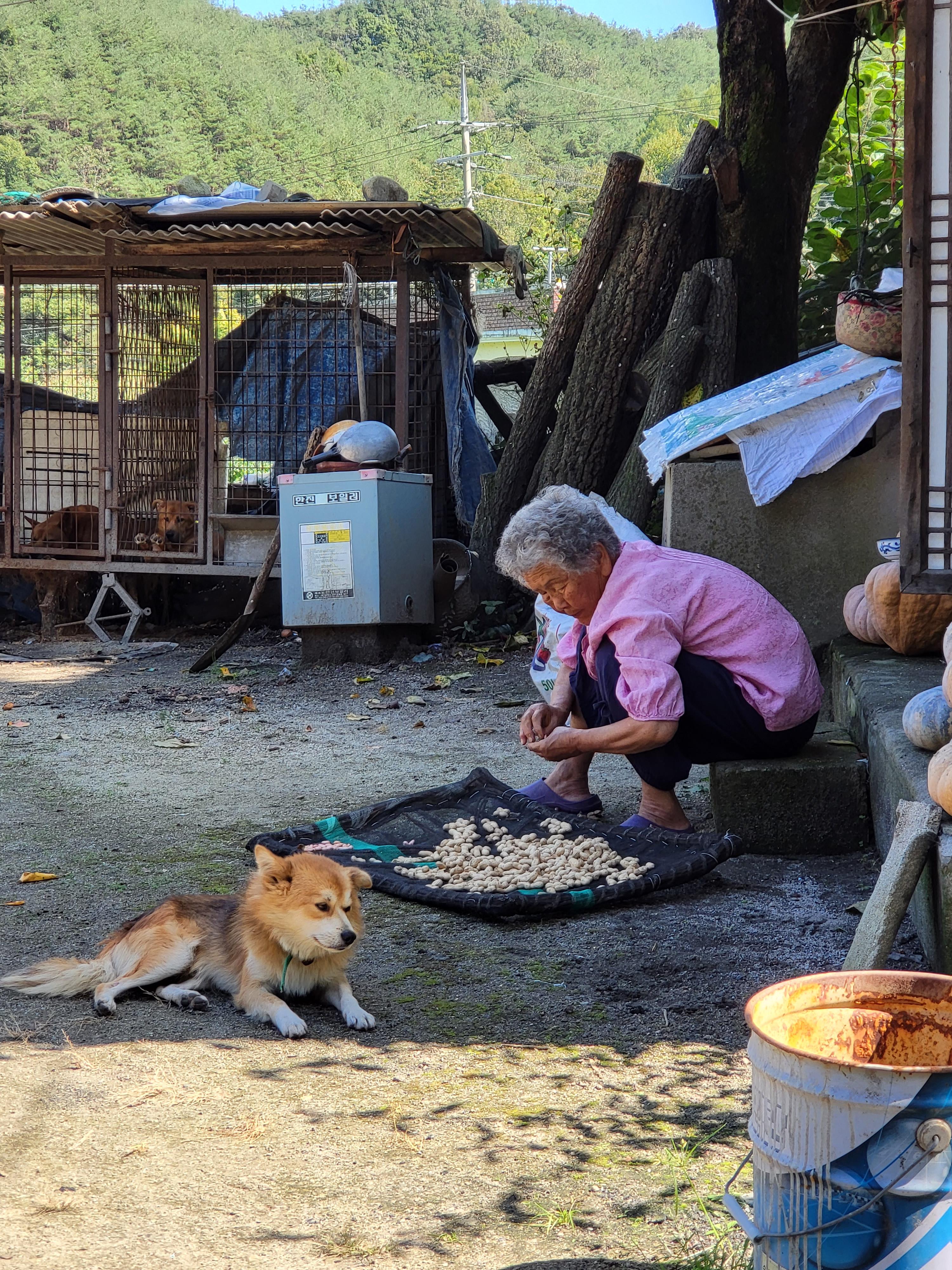 땅콩 만지는 엄마