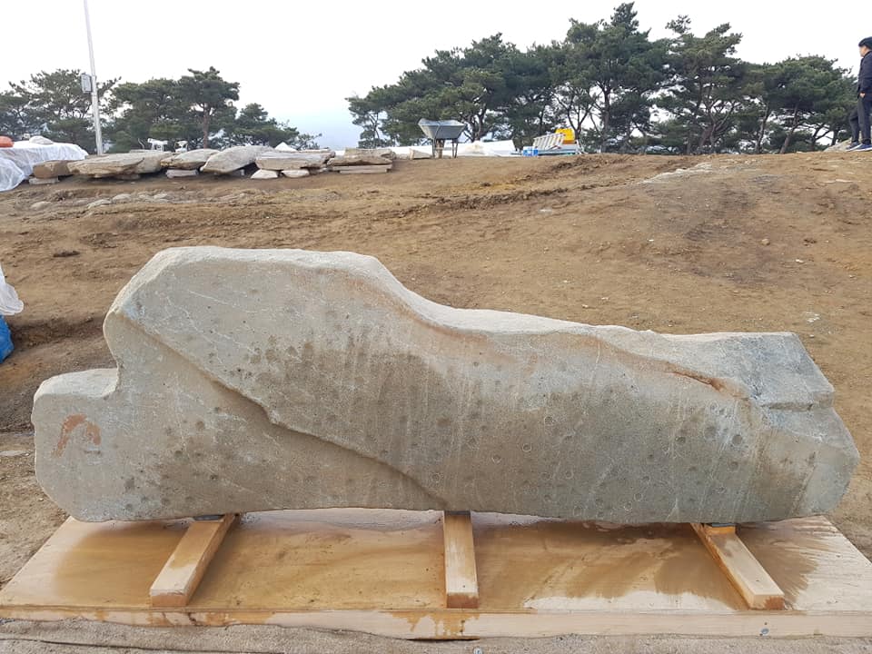 저런 돌이 함안에서는 안 난다는 사실, 또 실제 저 무덤을 만드는 데 쓴 그 어떤 돌과도 이 돌은 재질이 다르다는 사실