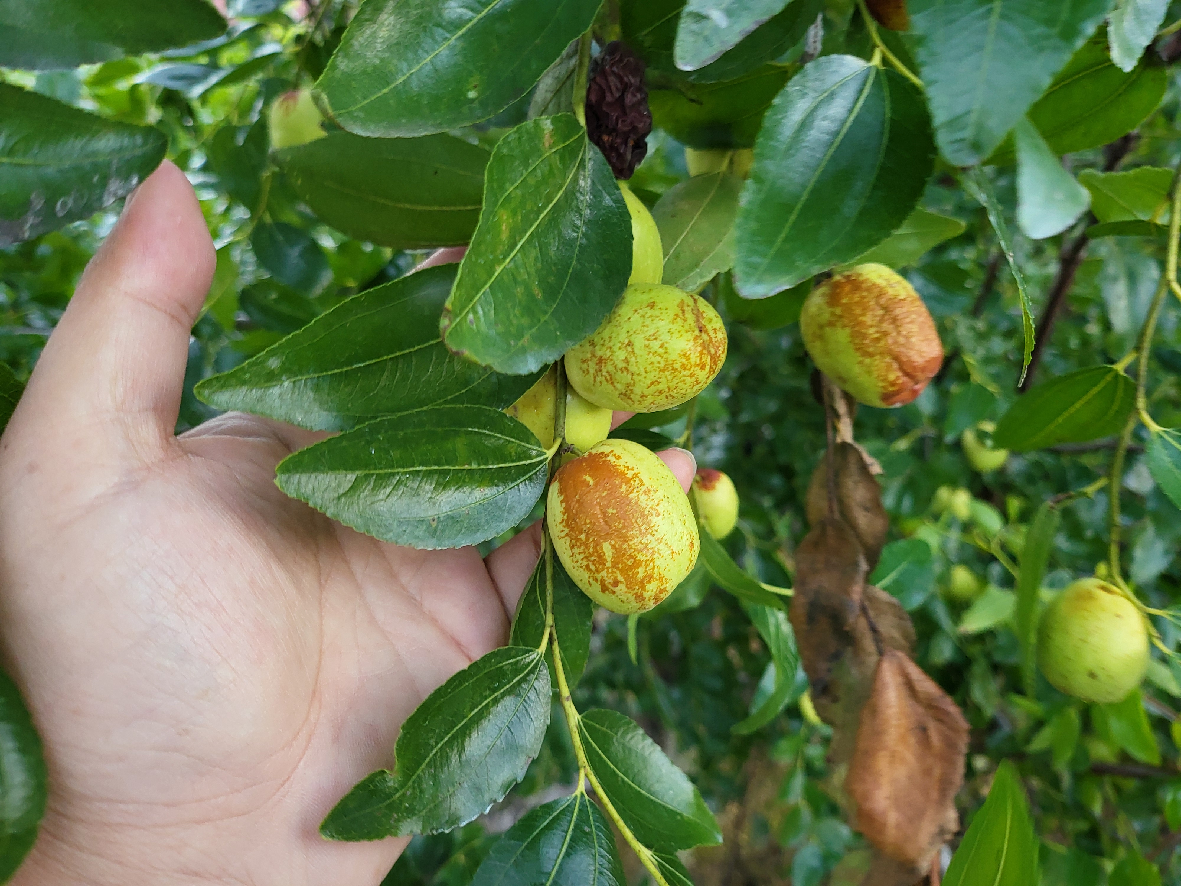 대추도 비실비실, 병이 들었는지 건디니 우두둑 낙하한다.