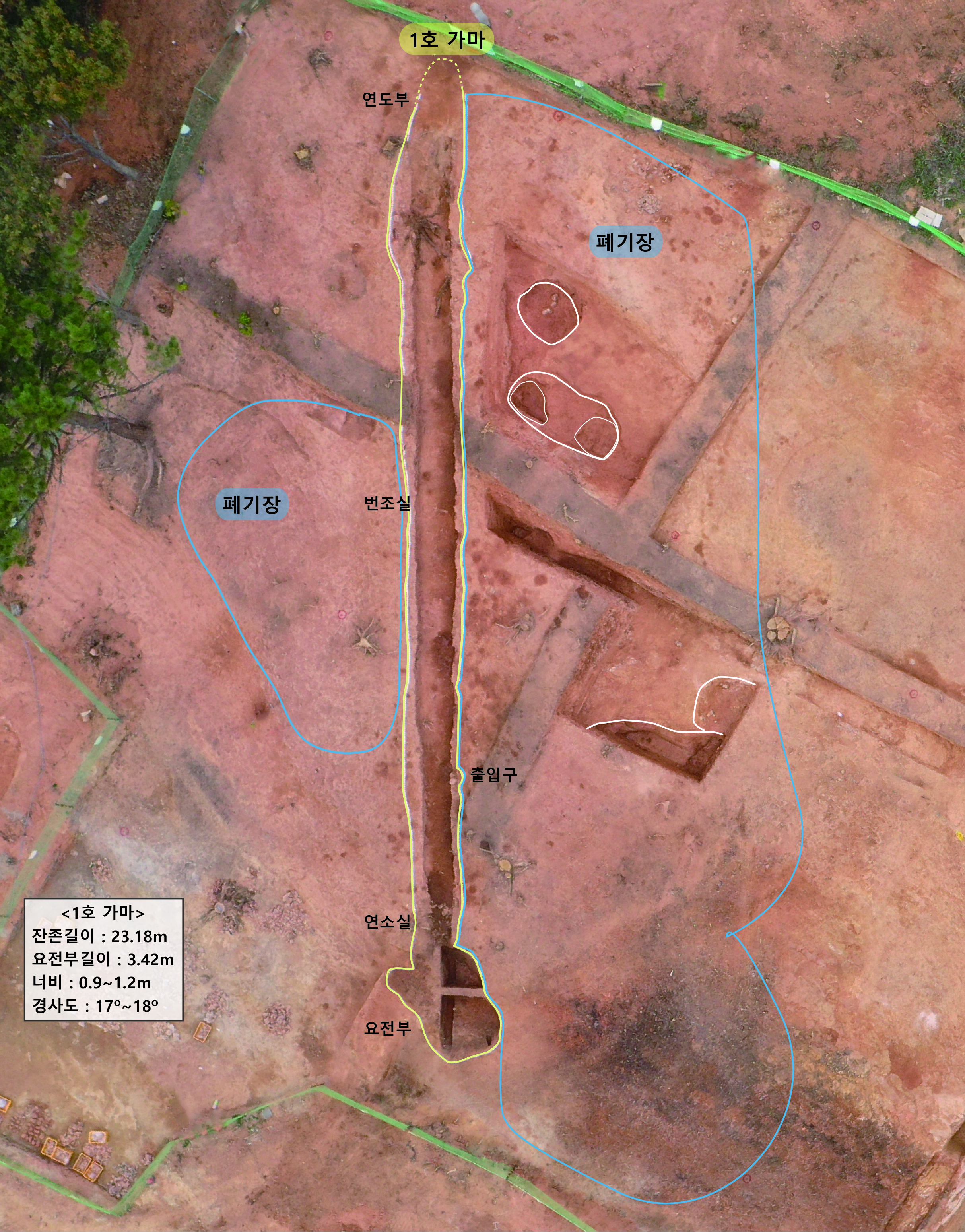 4. 1호 가마와 2호 가마는 모두 가마 폐기물층 위에 대지를 조성하여 축조. 이들 가마보다 앞선 가마가 (가마 아래에) 존재함