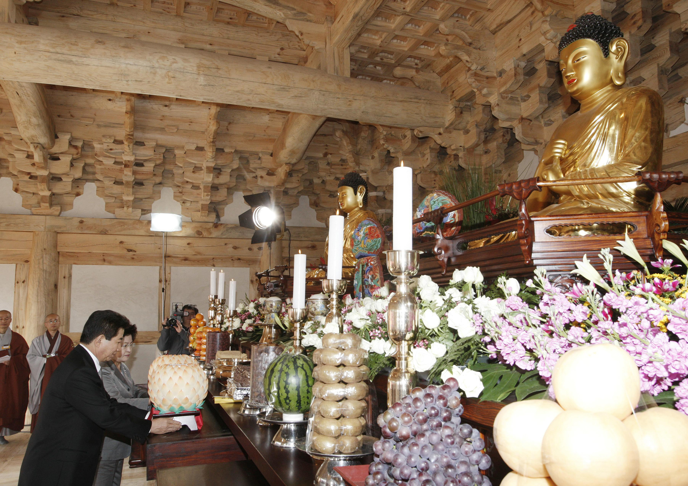 그 두 번째 방문이 임기말인 2007년 11월 24일이었으니, 이때 그는 해인사 대비로전 낙성 대법회에 참석해 국가원수로서 축사를 하기도 했다.