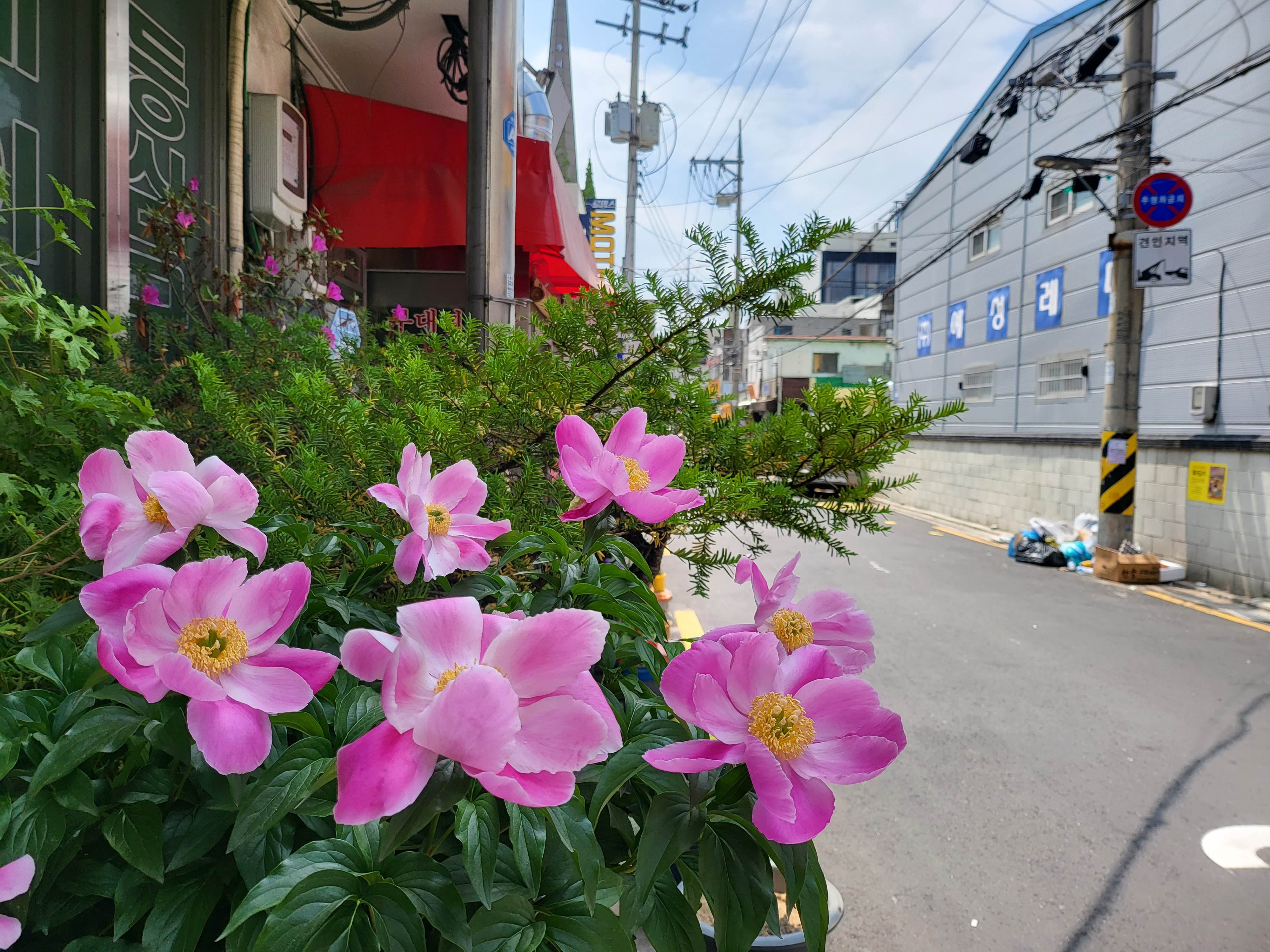 남영동 사전 인근 어느 음식점 앞 작약